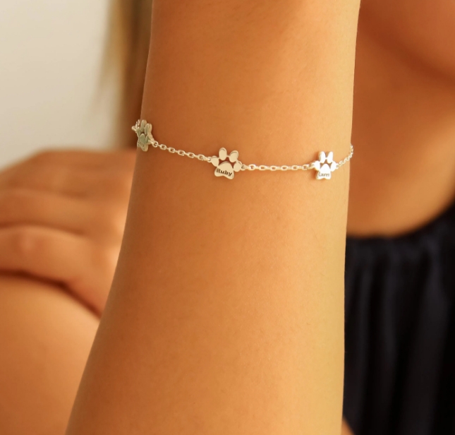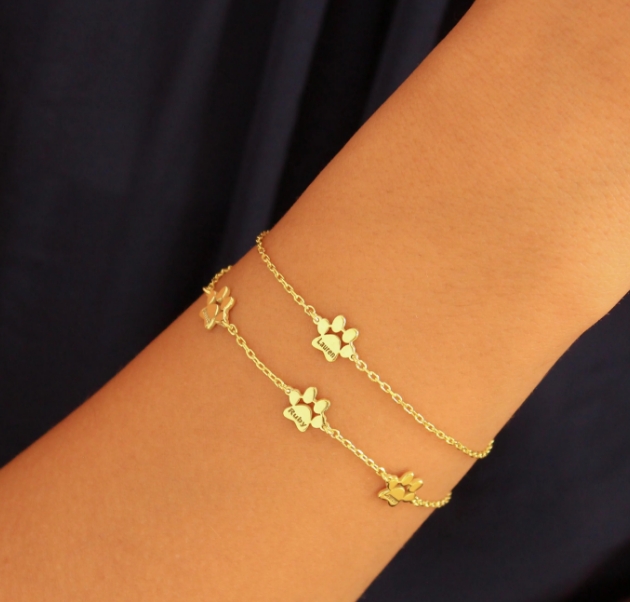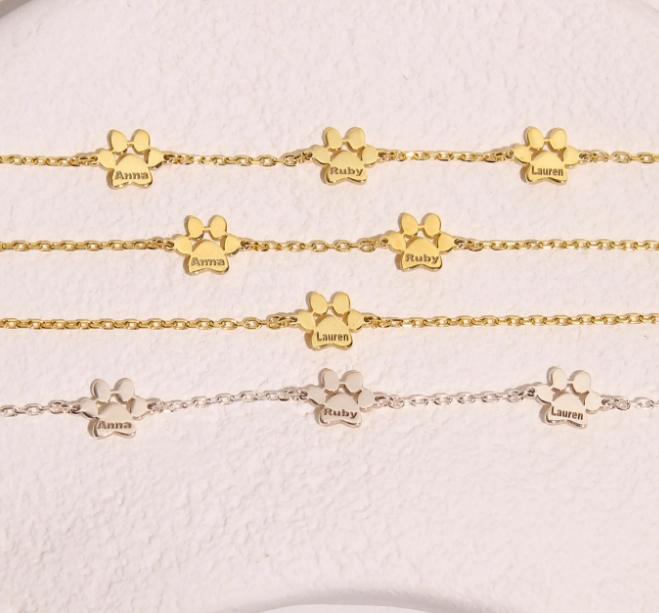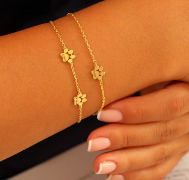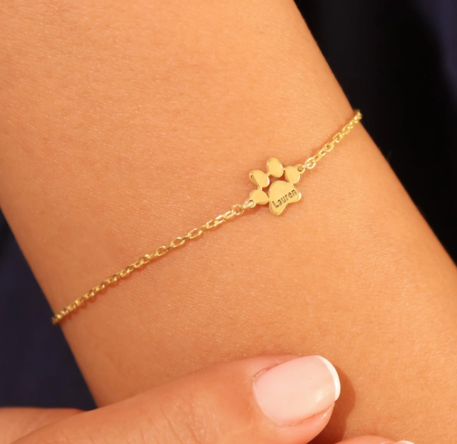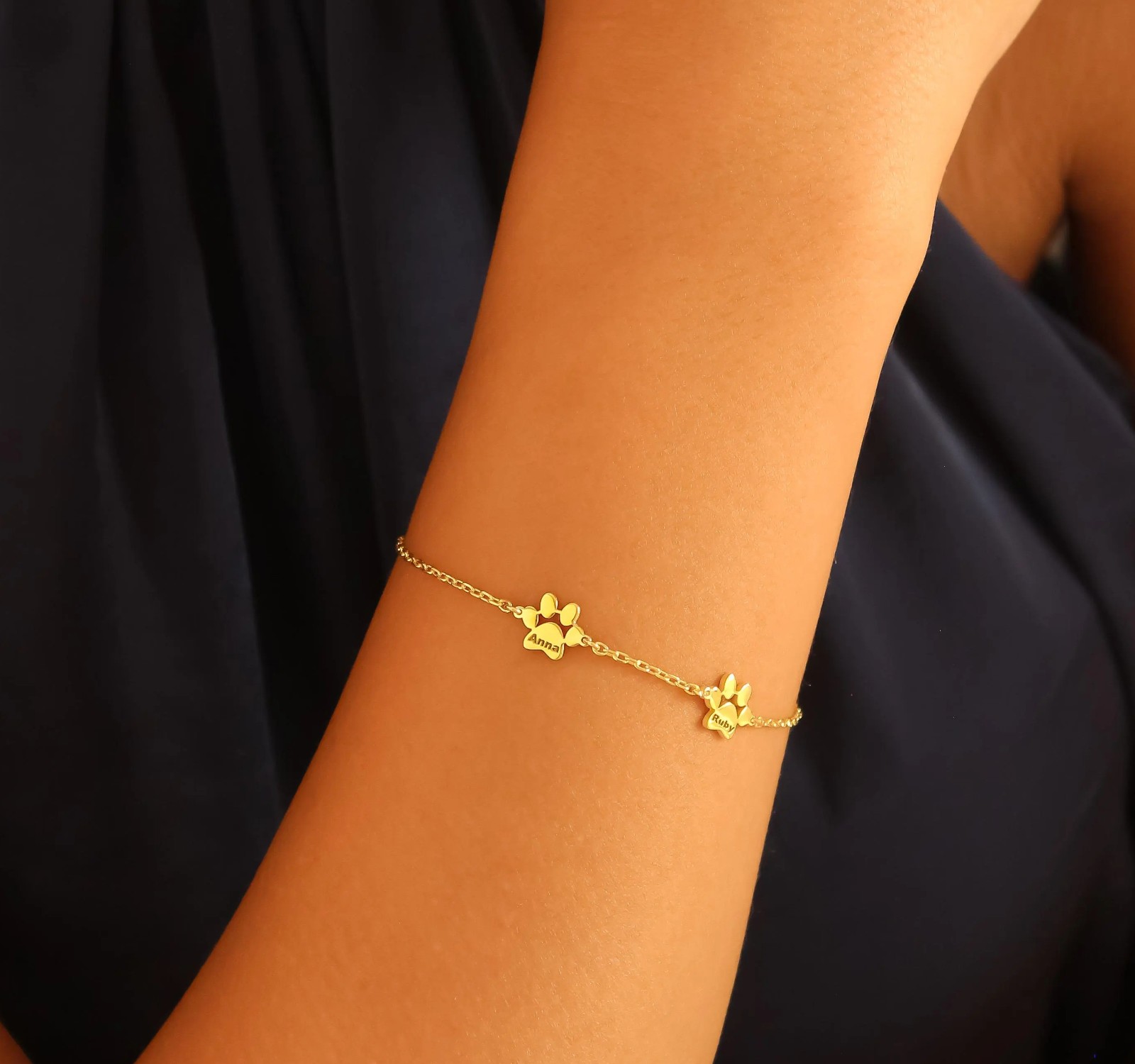14K Gold Personalisiertes Pfotenabdruck Namensarmband,Elegantes Hundepfotenarmband,Haustier Namensarmband,Geschenk für Haustierliebhaber,Weihnachtsgeschenke
