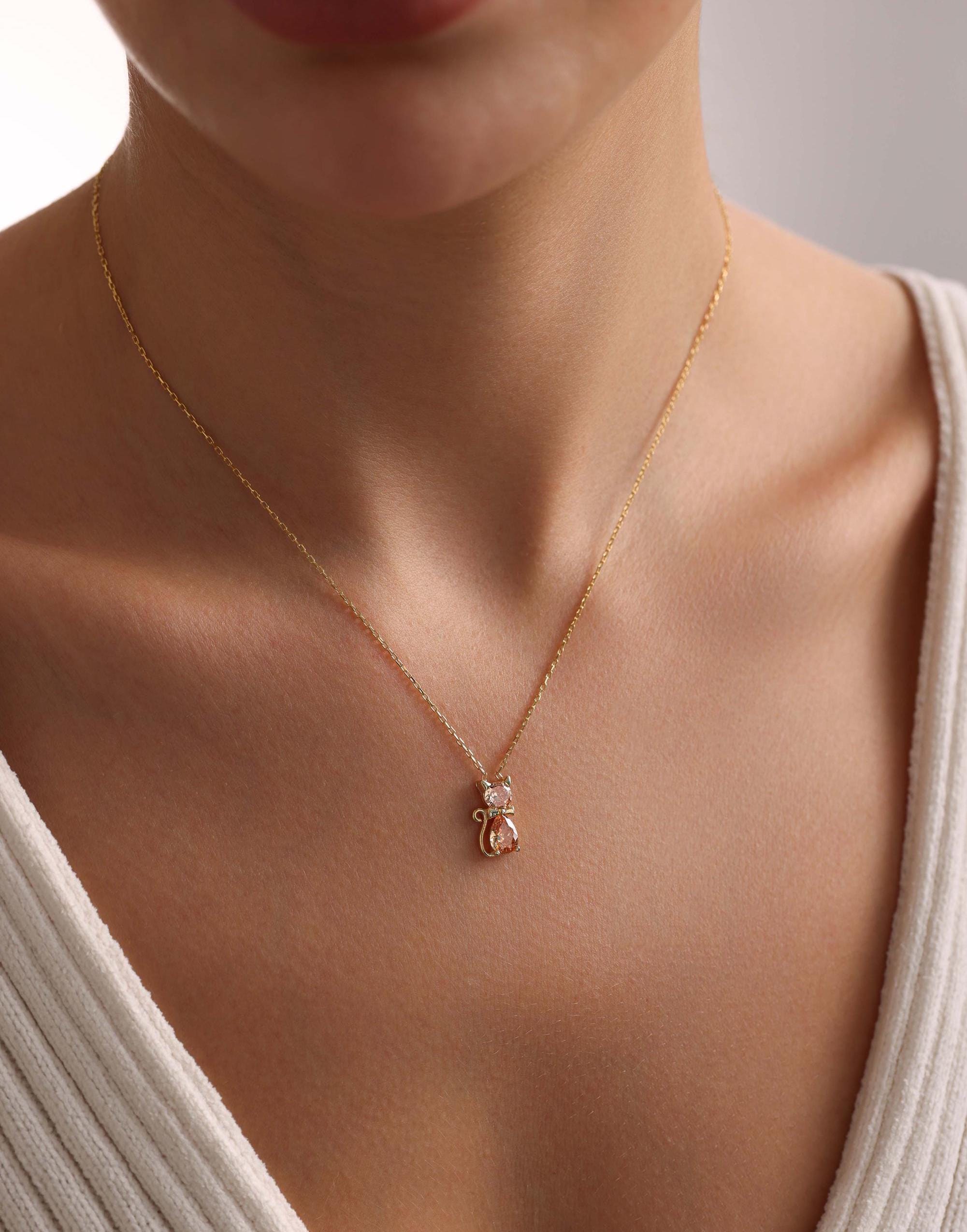 Geburtssteinkette für Damen, handgefertigter Schmuck, minimalistische Halskette, Schmuckgeschenk für Katzenliebhaber