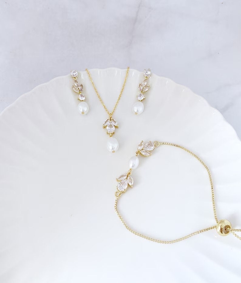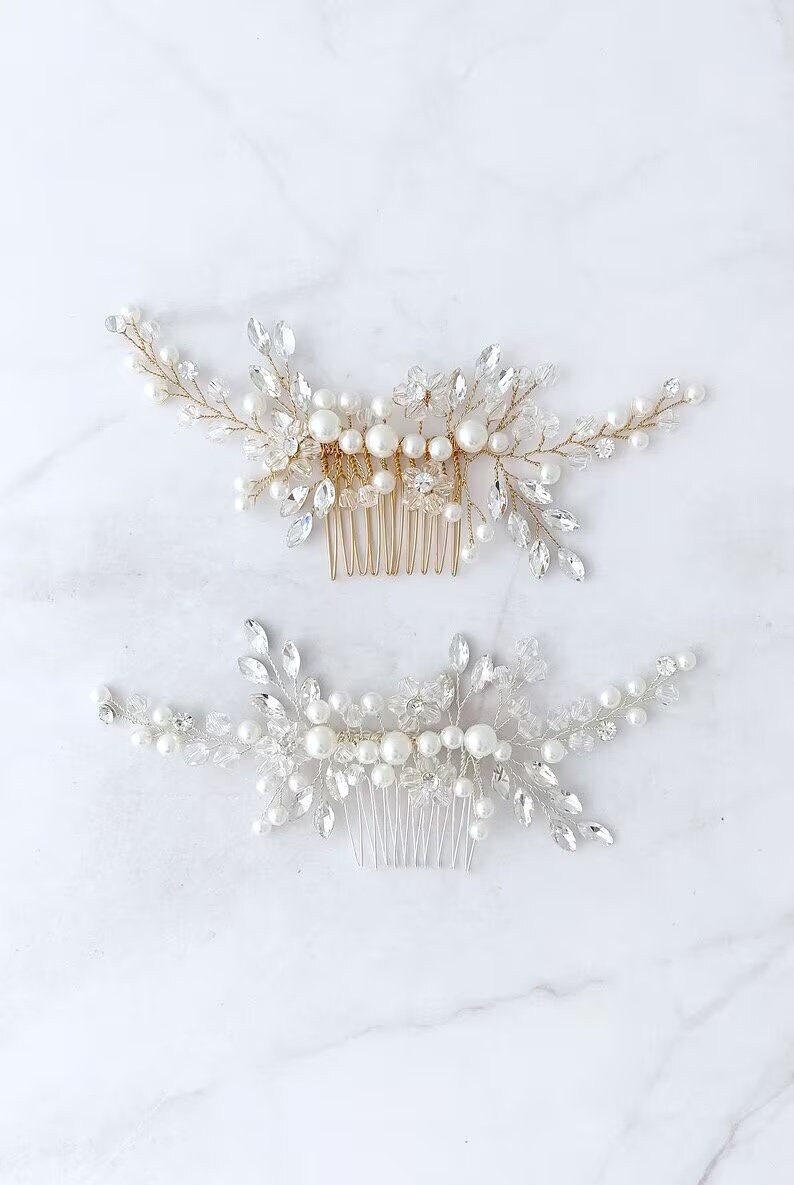 Wunderschöne passende Brautkette, Armband und Haarteil aus Kristall und Perle, auch in Silber oder Gold erhältlich.