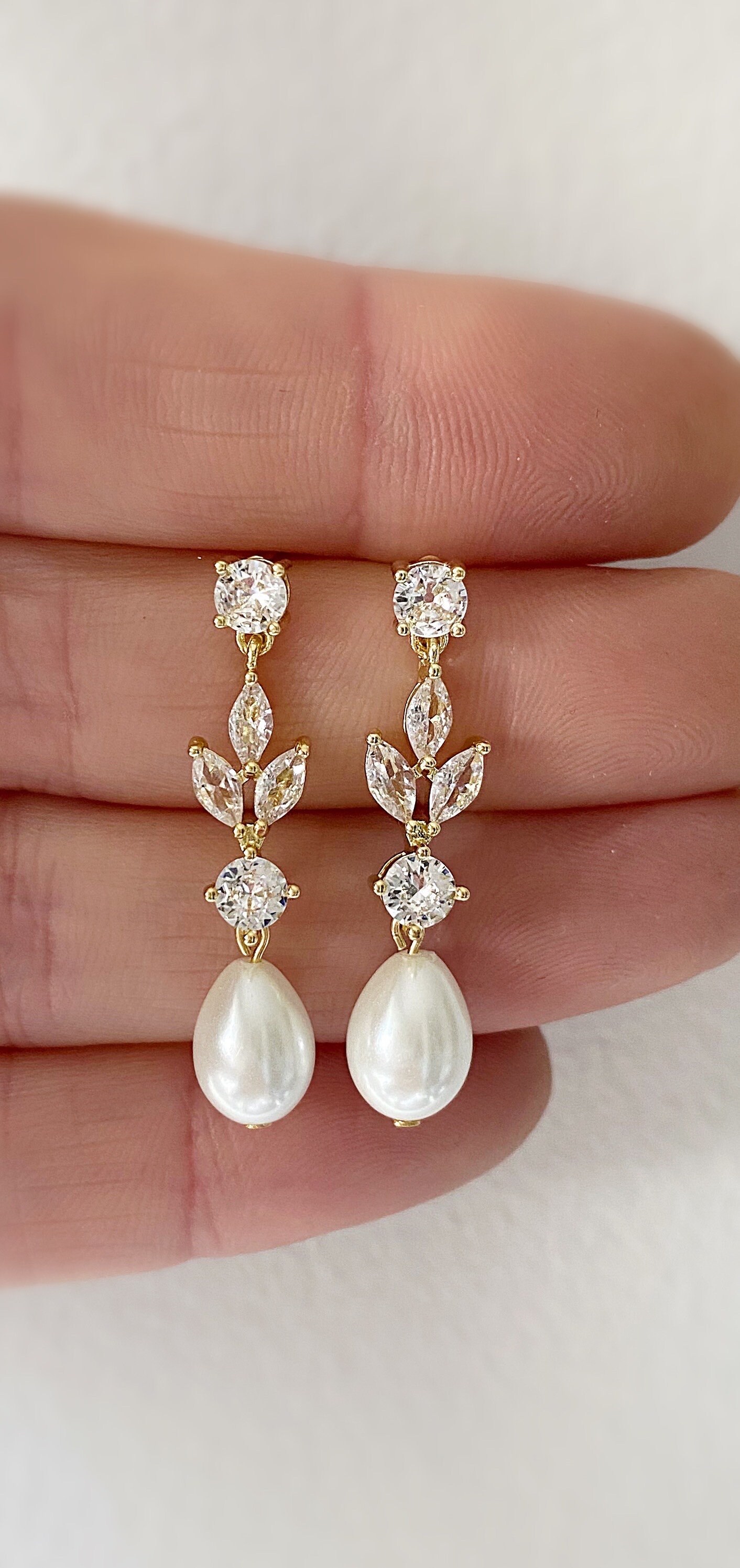 Sie kombinieren Marquise-Kristallsteine und sind mit leuchtenden Perlentropfen versehen.