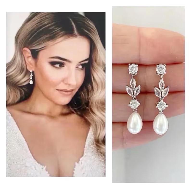 Unsere Perlen-Hochzeitsohrringe im Vintage-Stil verleihen einem klassischen Braut-Look den perfekten Abschluss.