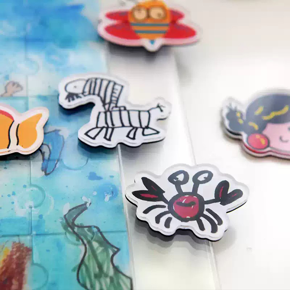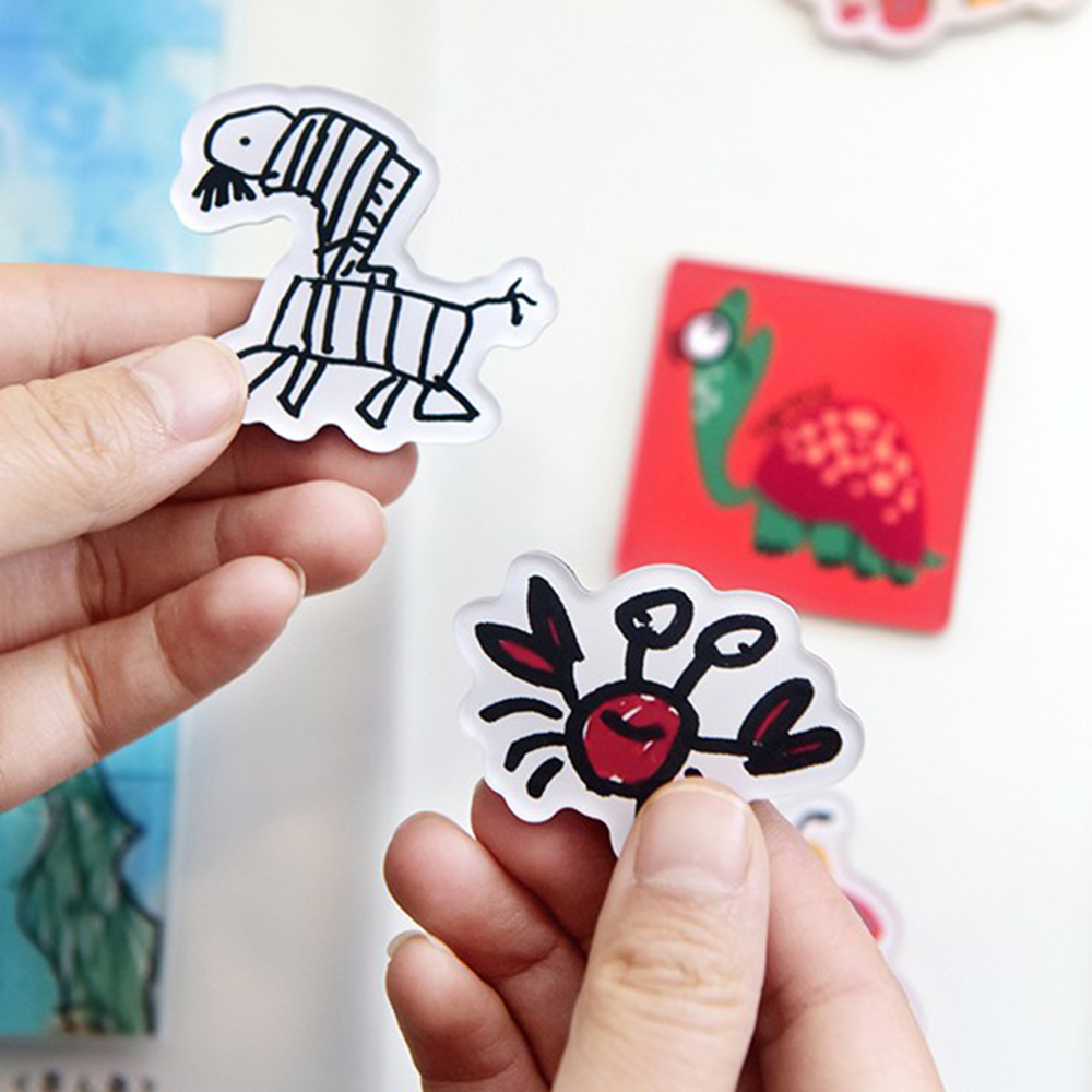 Dieser individuelle Kühlschrankmagnet mit Acrylmalerei für Kinder verwandelt unschuldige Kinderbilder in einzigartige, kreative und interessante Dekorationen für Ihr Zuhause. Sie müssen nur die Bilder Ihres Kindes bereitstellen, und wir fertigen daraus sorgfältig exquisite magnetische Acrylaufkleber an, die jeden Strich perfekt zur Geltung bringen.