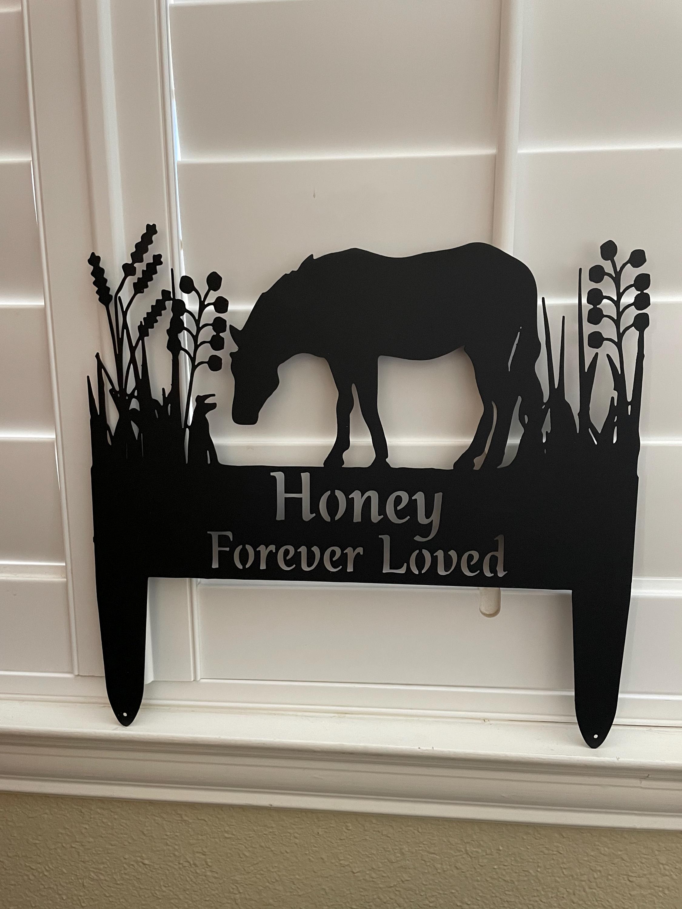 Feiern Sie das Erbe Ihres Pferdes – egal, ob es Thunder, Bella oder Majestic Storm hieß. Wir gravieren den Namen Ihres Pferdes und machen diese Markierung zu einer bleibenden Erinnerung an seinen langen Galopp, sein friedliches Grasen und die Art und Weise, wie es Sie immer im richtigen Moment anstupste.