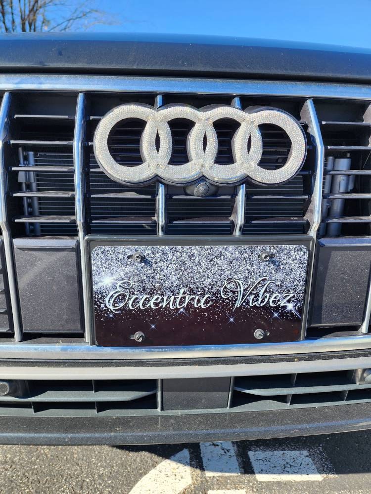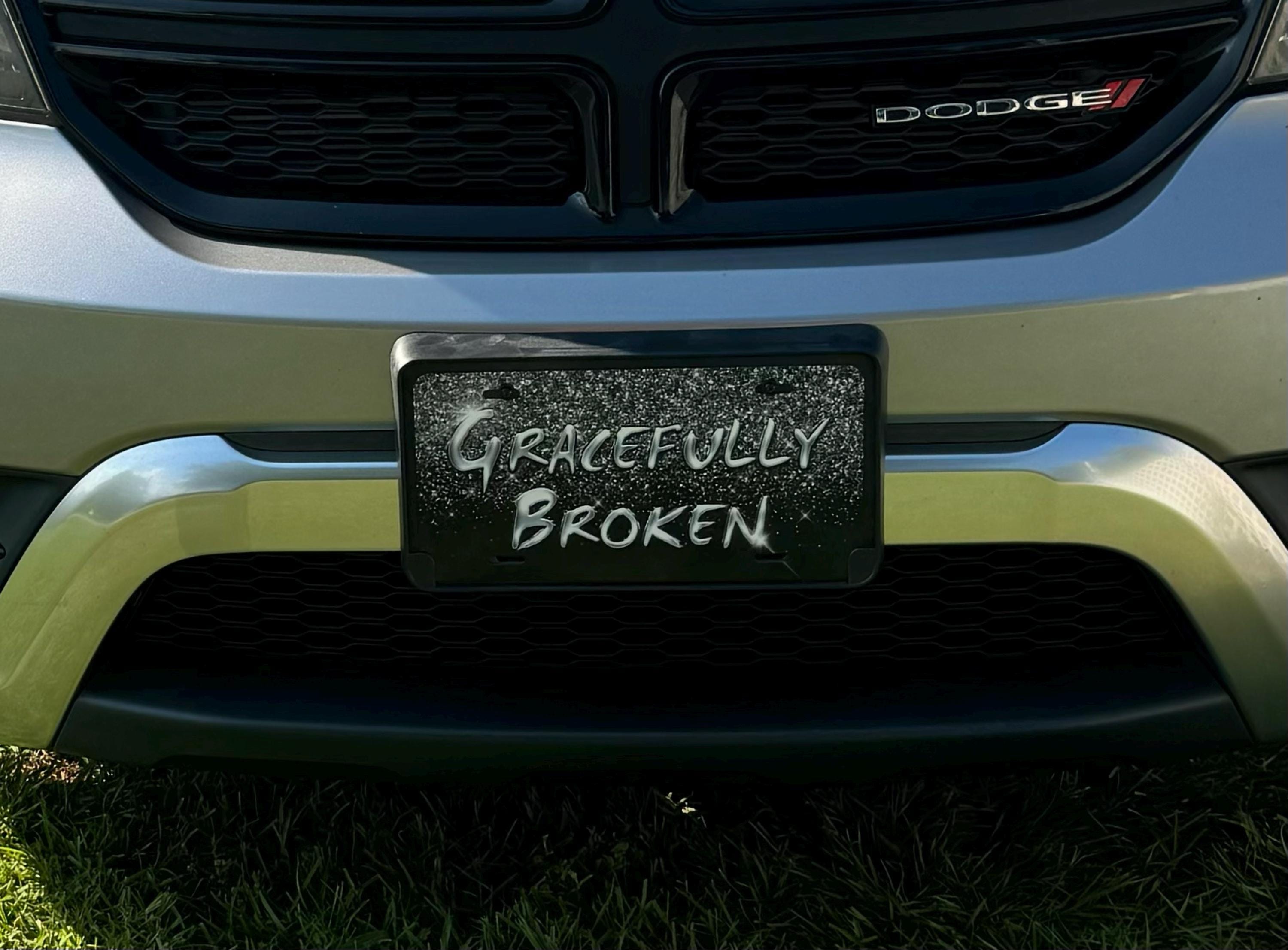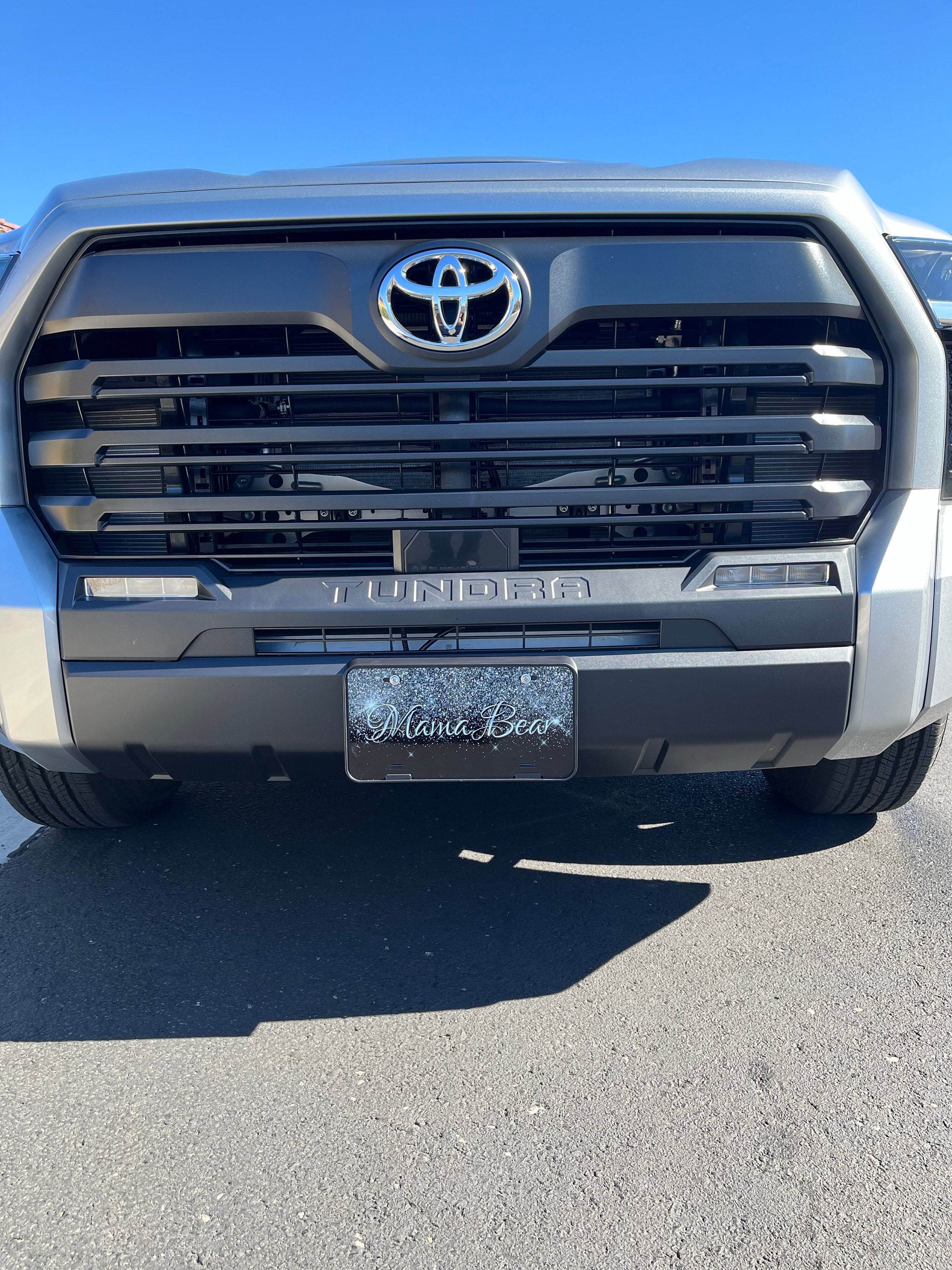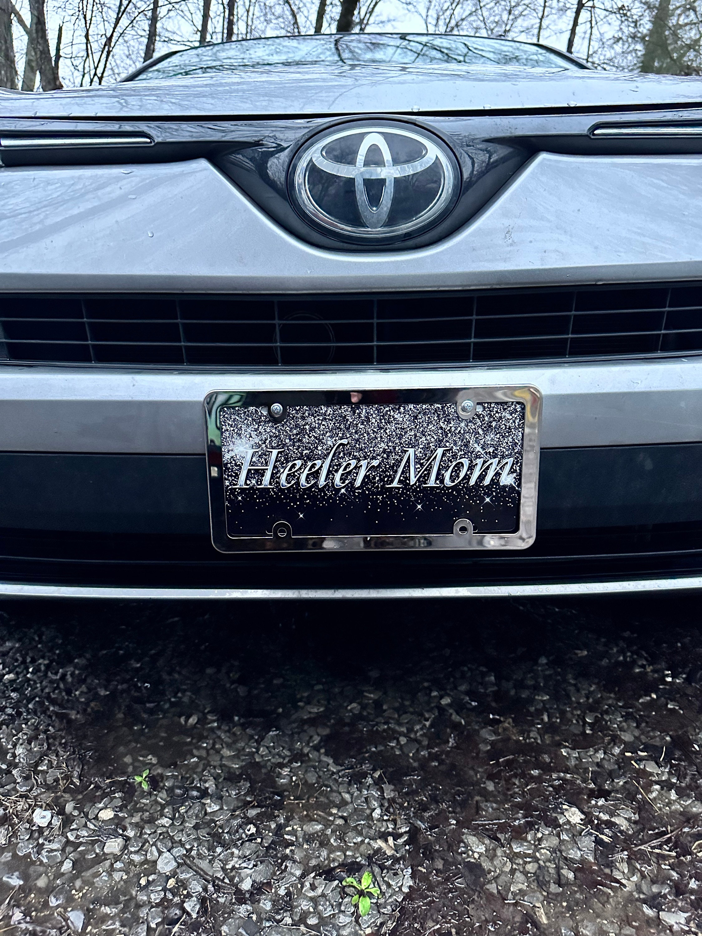Ein schwarzes Nummernschild mit silbergrauem Glitzer (KEIN ECHTER GLITZER) und Ihrem Text/einem beliebigen Namen.