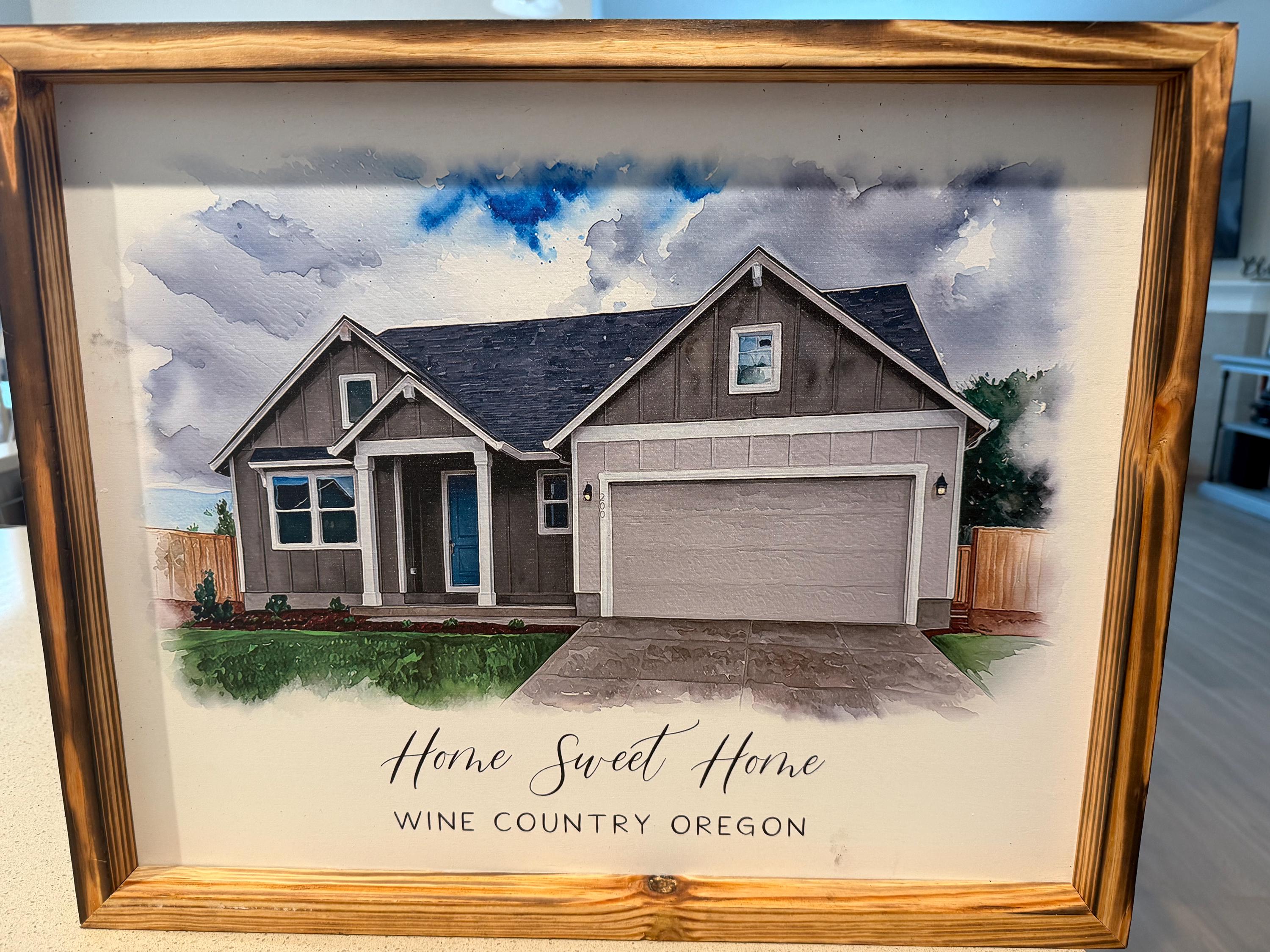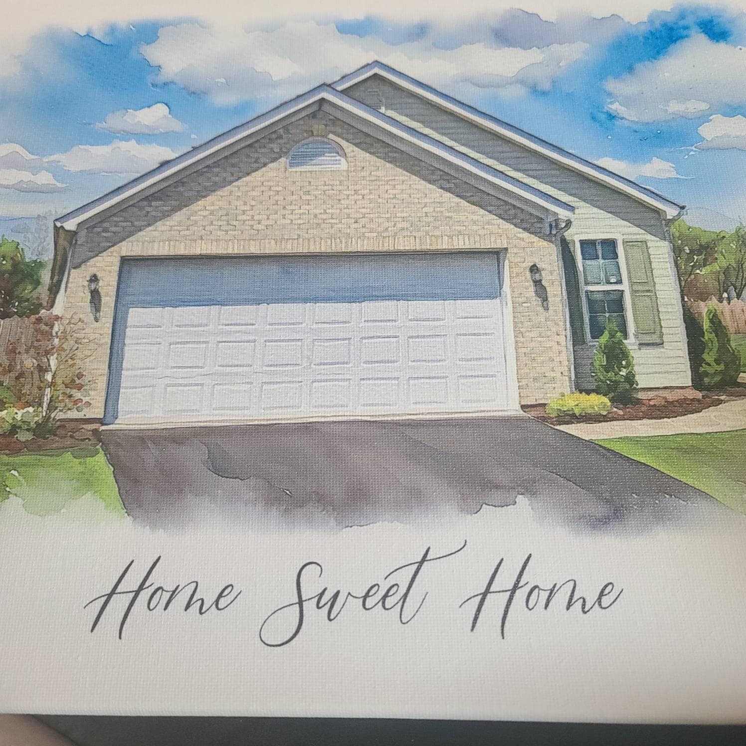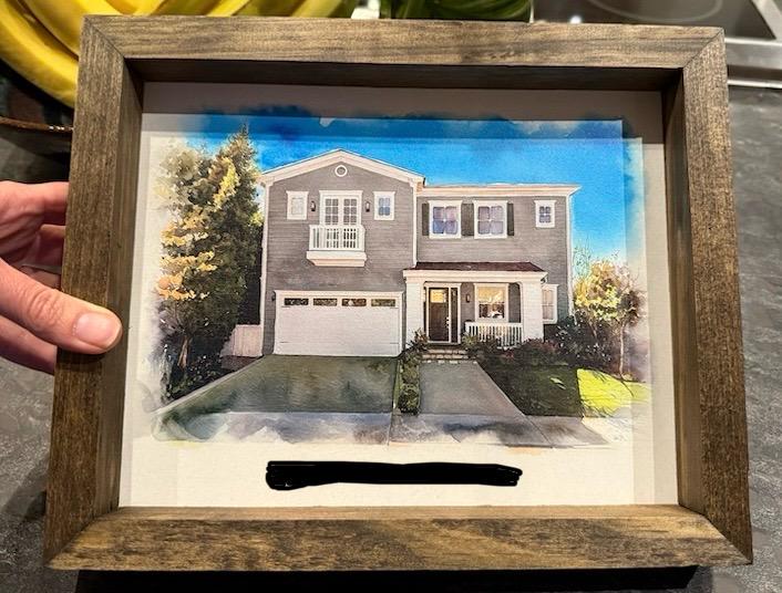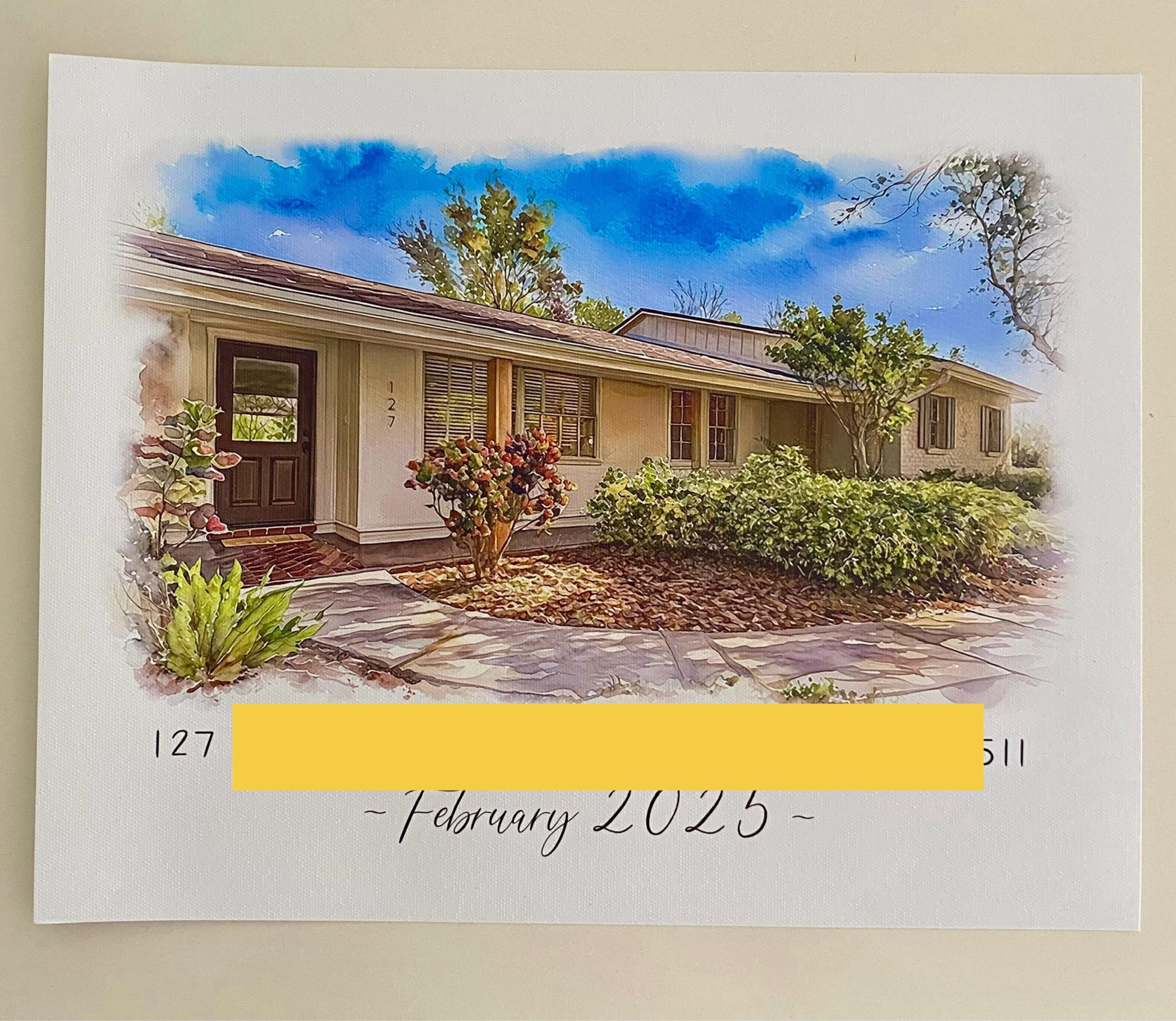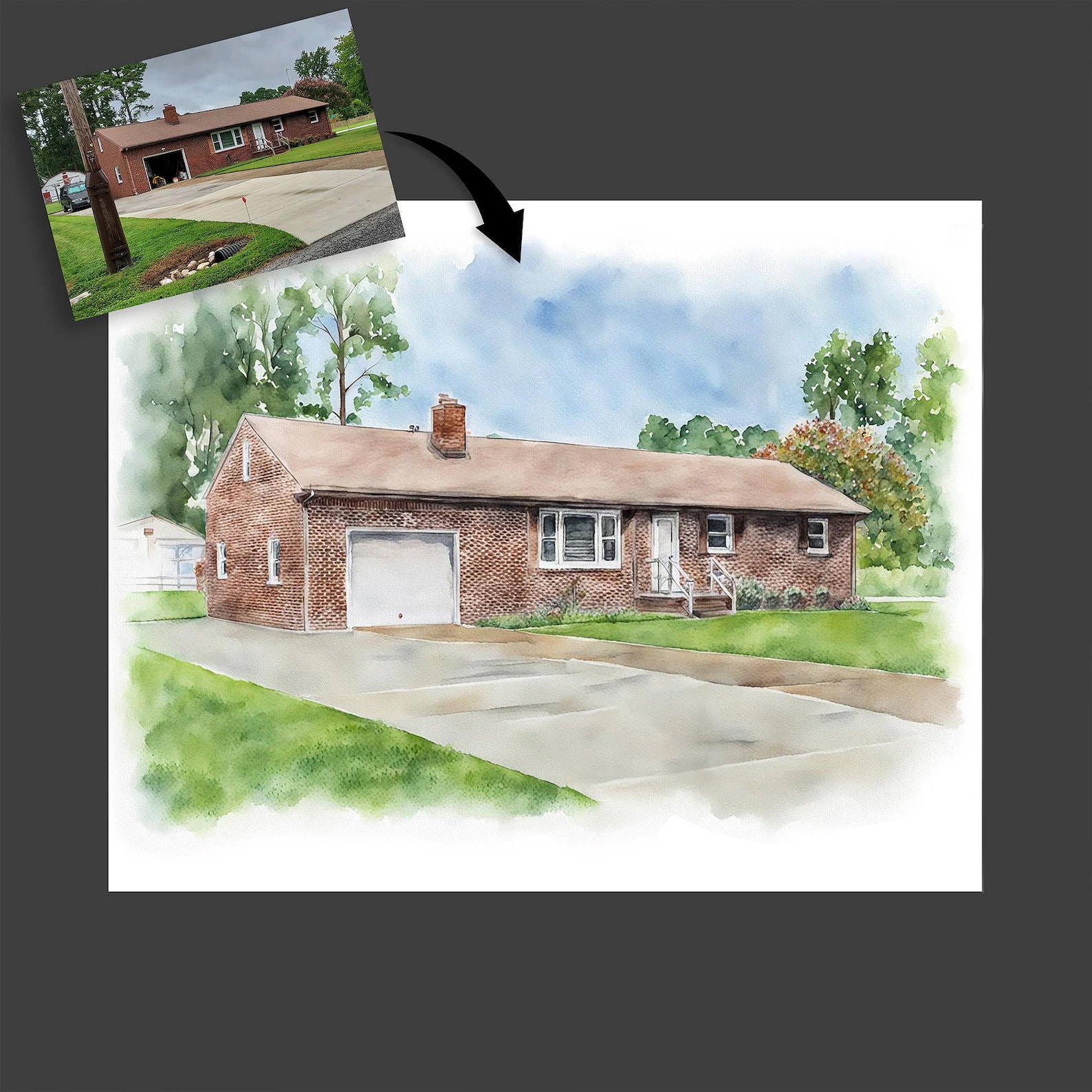 (Hausporträt, Hausmalerei, Einweihungsgeschenk, Schild „Unser erstes Zuhause“, Schild „Home Sweet Home“, Aquarell-Haus, Hausporträt, Geschenk für Immobilienmakler)