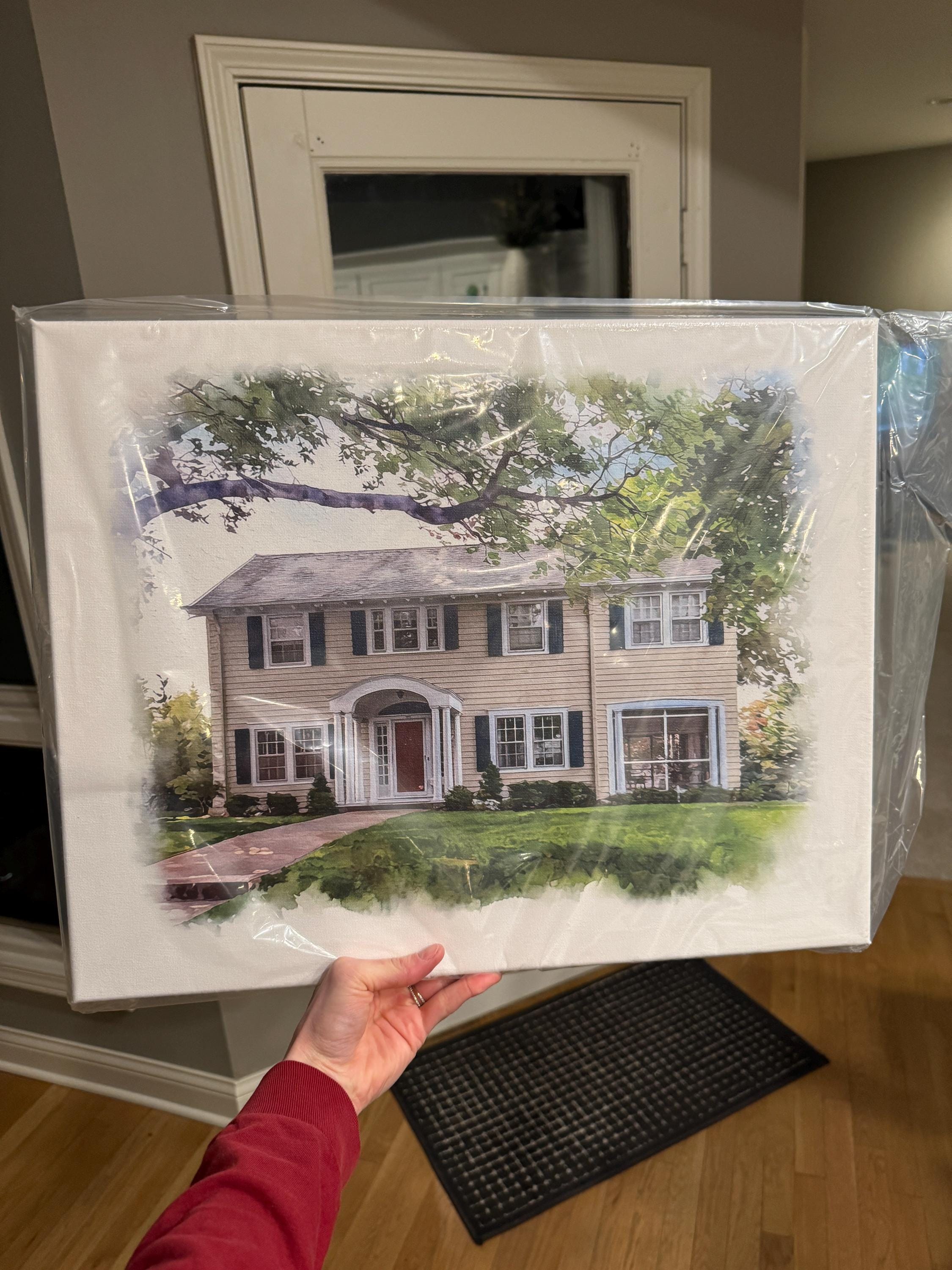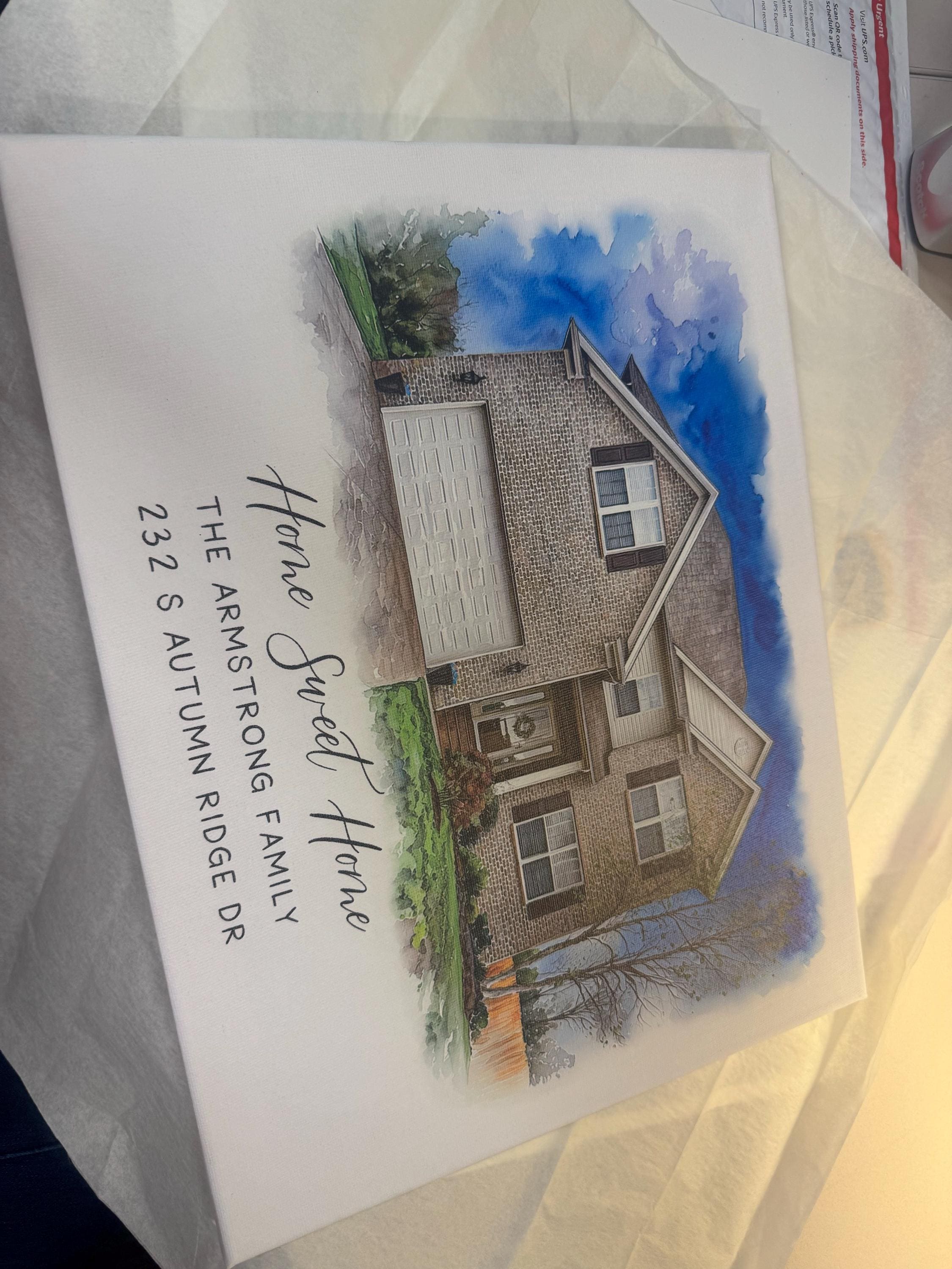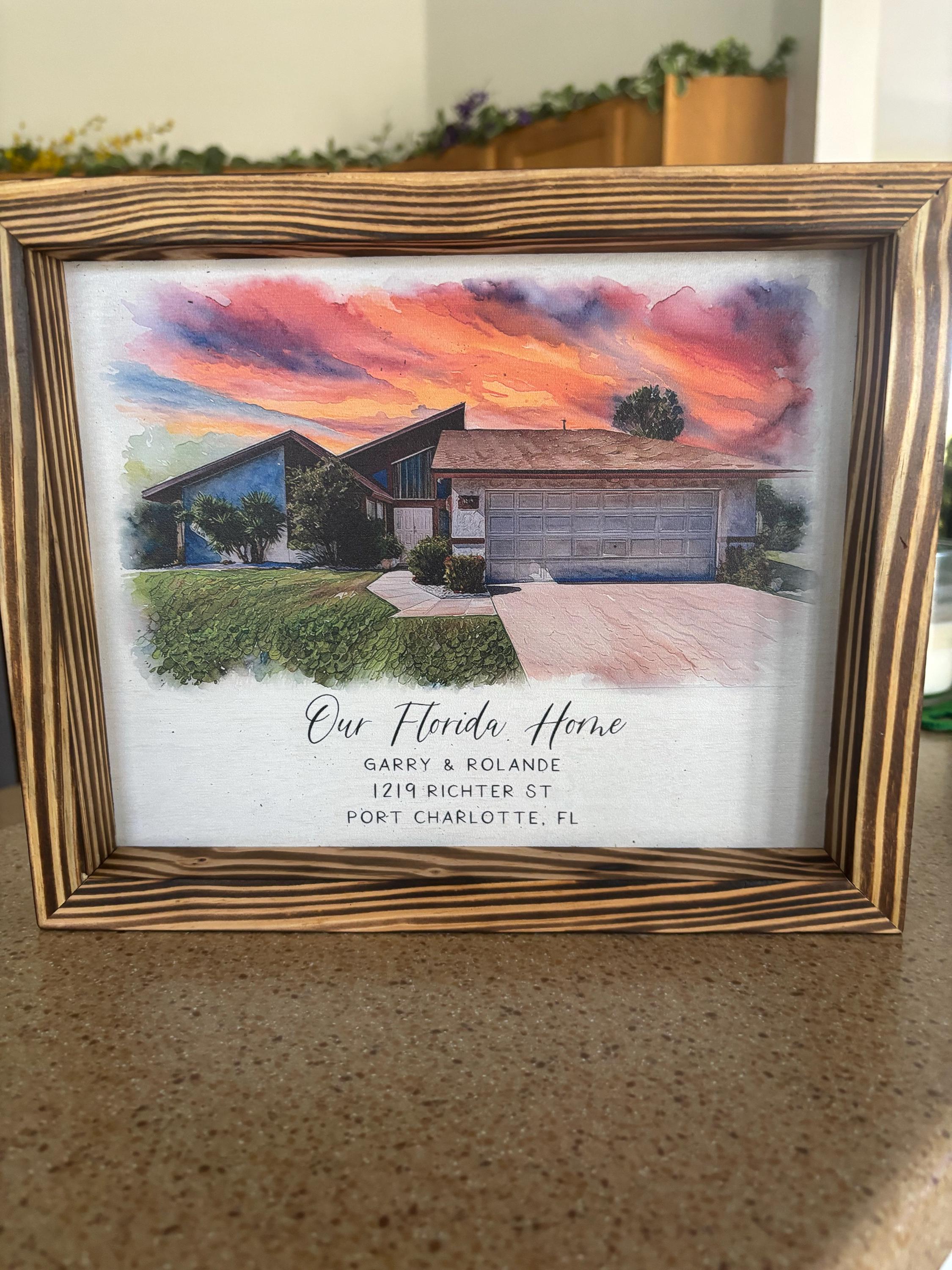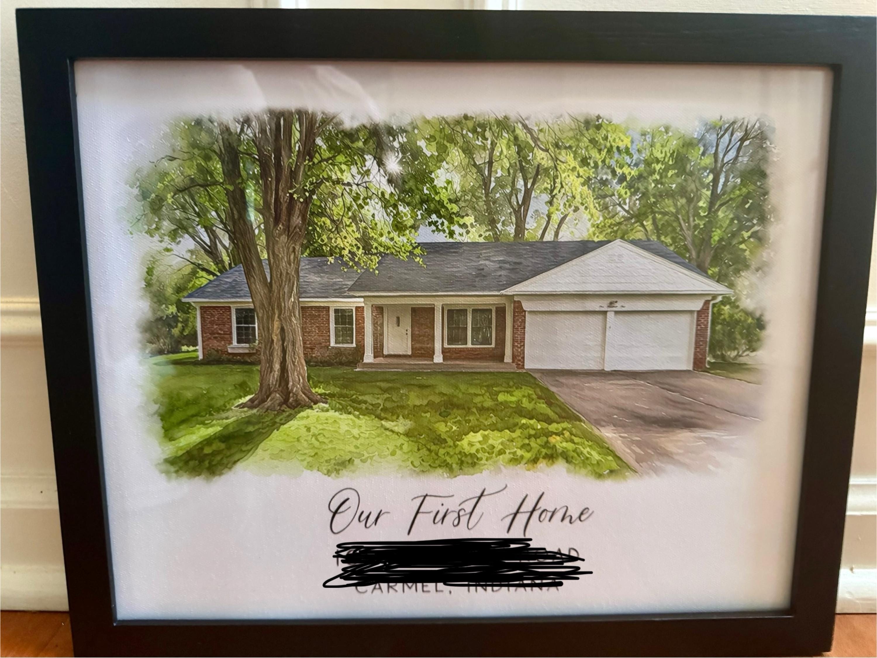(Hausporträt, Hausmalerei, Einweihungsgeschenk, Schild „Unser erstes Zuhause“, Schild „Home Sweet Home“, Aquarell-Haus, Hausporträt, Geschenk für Immobilienmakler)