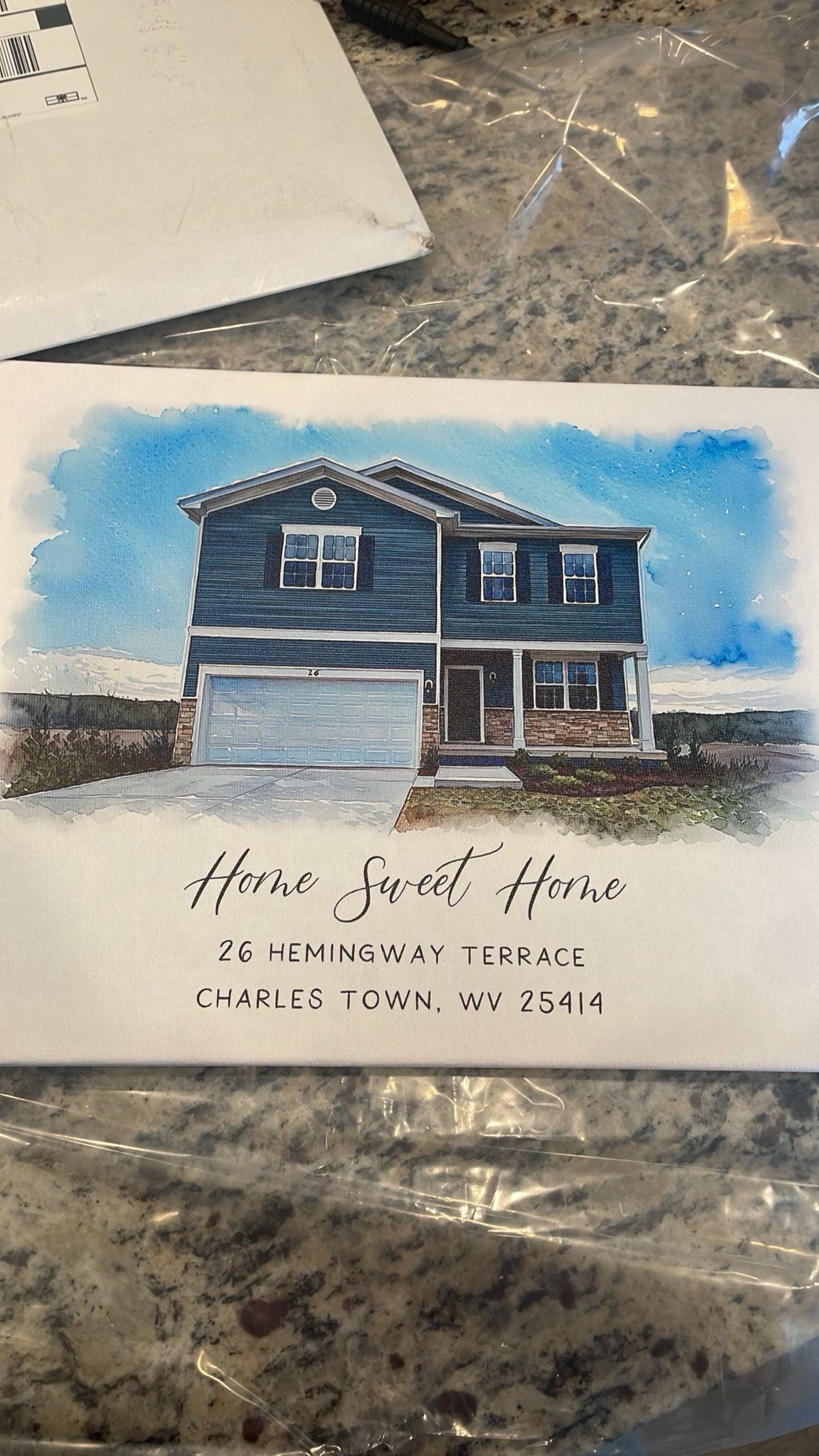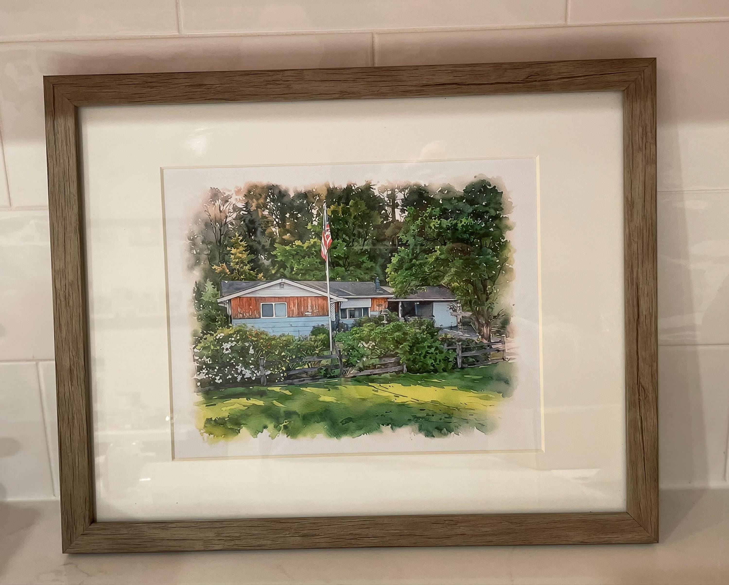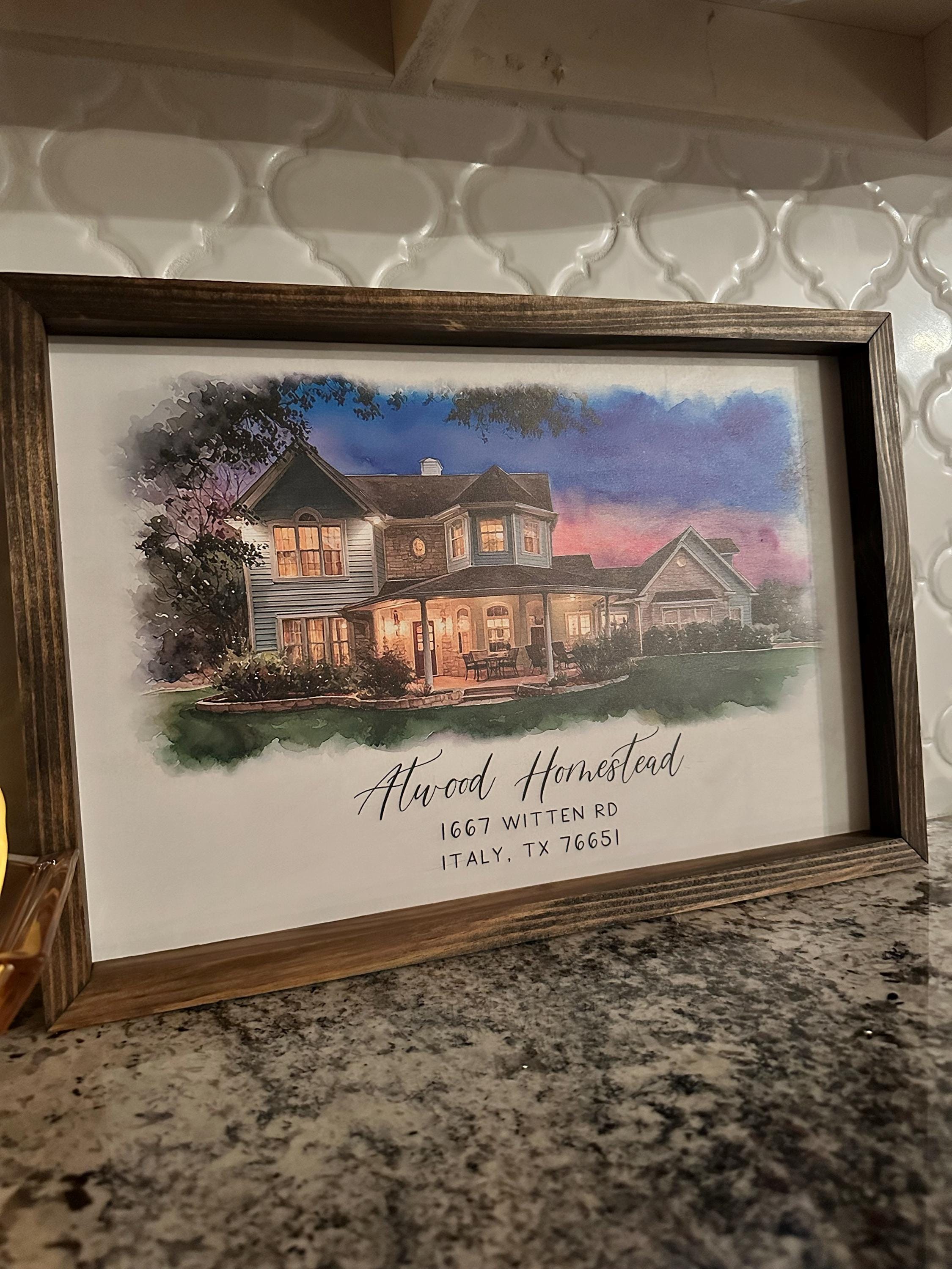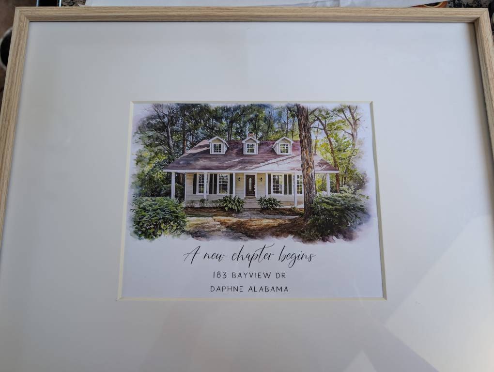 (Hausporträt, Hausmalerei, Einweihungsgeschenk, Schild „Unser erstes Zuhause“, Schild „Home Sweet Home“, Aquarell-Haus, Hausporträt, Geschenk für Immobilienmakler)