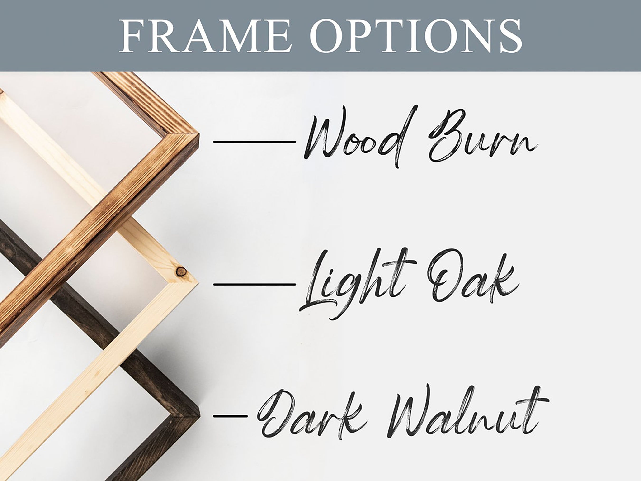 Schritt 2. Wählen Sie eine Rahmenfarbe. Unsere Rahmenfarben sind „hell“, „holzbefeuert“ und „dunkel“. Diese Farben sind auf unseren Fotos zu sehen. Wählen Sie „Keine“, wenn Sie einen digitalen Download bestellen.