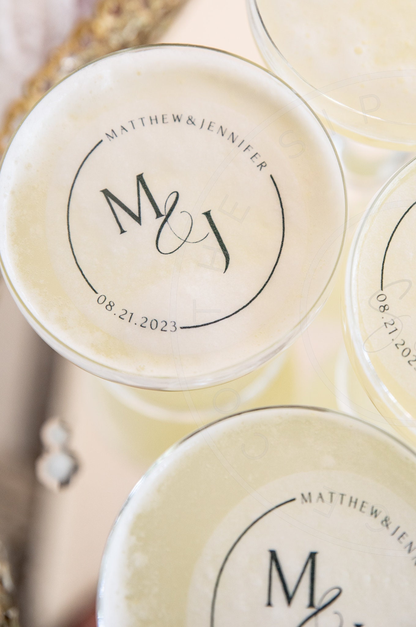 Sobald der Topper auf dem Getränk platziert ist, kann er etwas schrumpfen. Die Topper bleiben an Ort und Stelle, bis das Getränk angefasst wird. Achten Sie beim Verwenden der Topper darauf, dass Ihre Hände trocken sind, und legen Sie sie flach in das Getränk, nicht schräg, und tauchen Sie sie nicht ein, da sonst der Aufdruck ausblutet. Wir empfehlen, mit den Toppern einen Strohhalm zum Trinken zu verwenden. Alternativ können Sie die Topper einfach entfernen, um Ihr Getränk zu genießen. Obwohl das Oblatenpapier essbar ist, verändert es seine Textur, wenn es in Flüssigkeit getaucht wird. Topper werden aus Oblatenpapier hergestellt, lösen sich langsam auf und sinken auf den Boden des Glases. Oblatenpapier löst sich nicht vollständig auf.