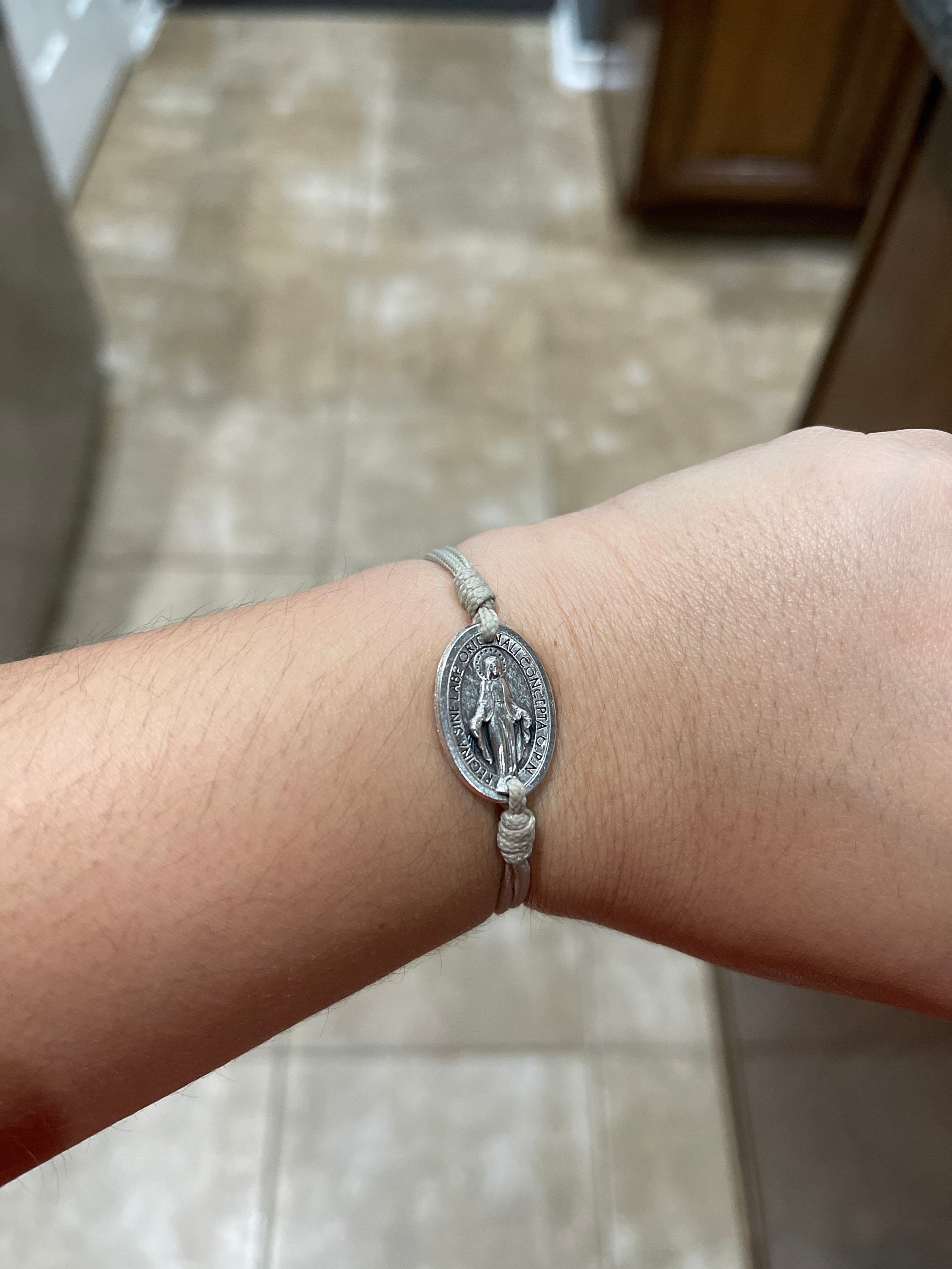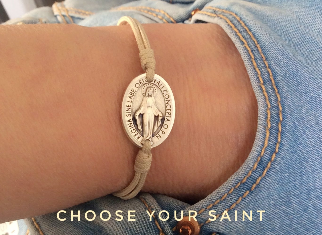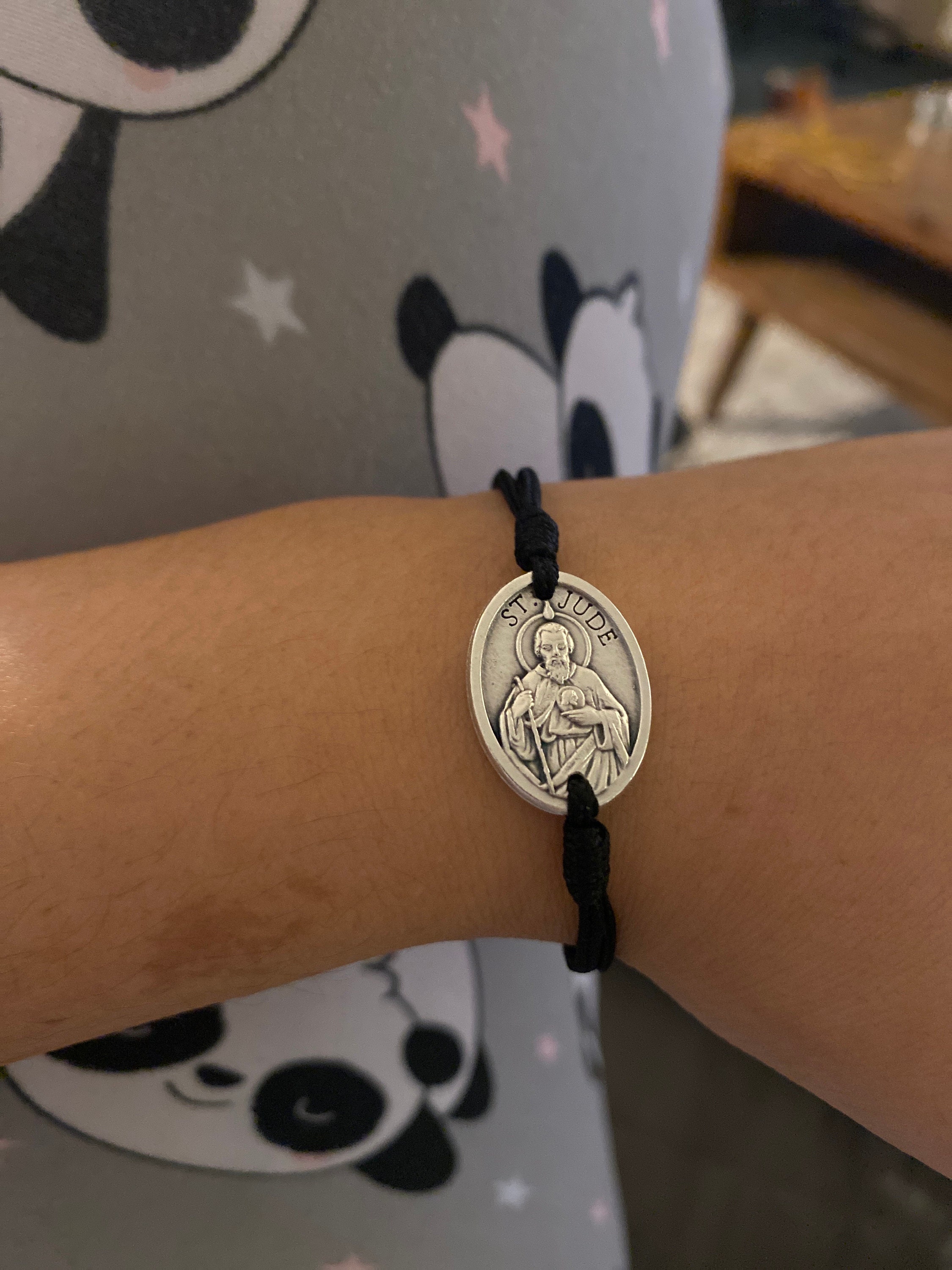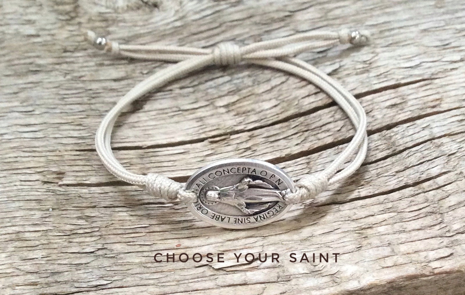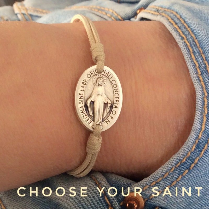 Dieses Armband wird an einer Kordel mit einer 0,9 Zoll langen silberfarbenen Heiligenmedaille und einem verschiebbaren Laufknoten für eine einfache Passform geliefert. 9,5 Zoll (24 cm) im vollständig geöffneten Zustand. Wählen Sie Ihren Heiligen und wir fertigen das Armband nur für Sie an! ❤️