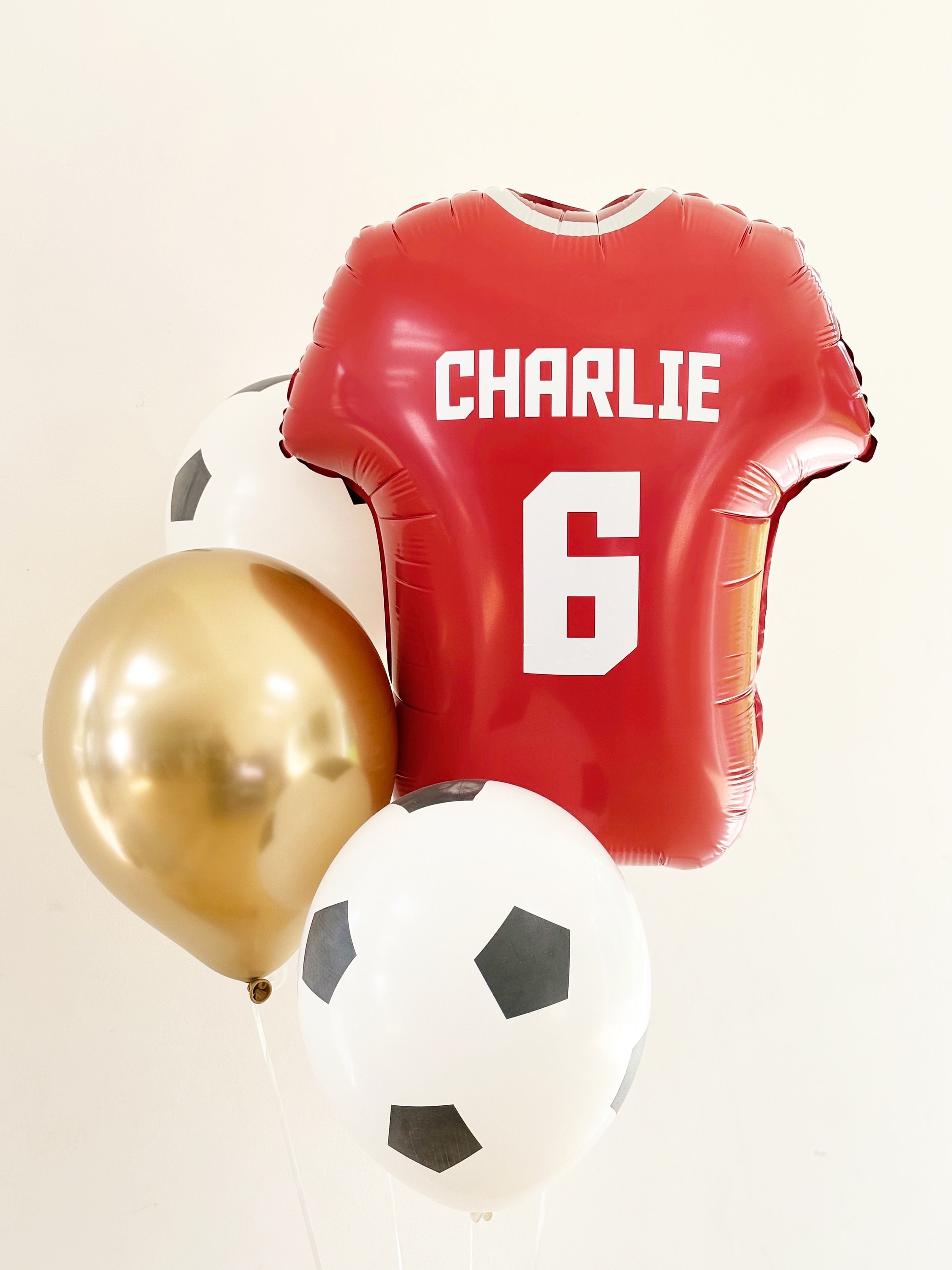 Überraschen Sie Ihren Fußballfan mit diesem personalisierten Fußballballon-Set. Arsenal-, Chelsea- oder Manchester United-Fan? Wir passen die Farben ihres Lieblingsvereins an. Sie können den Namen und das Alter des Geburtstagskindes personalisieren, um das Ganze zu etwas ganz Besonderem zu machen.