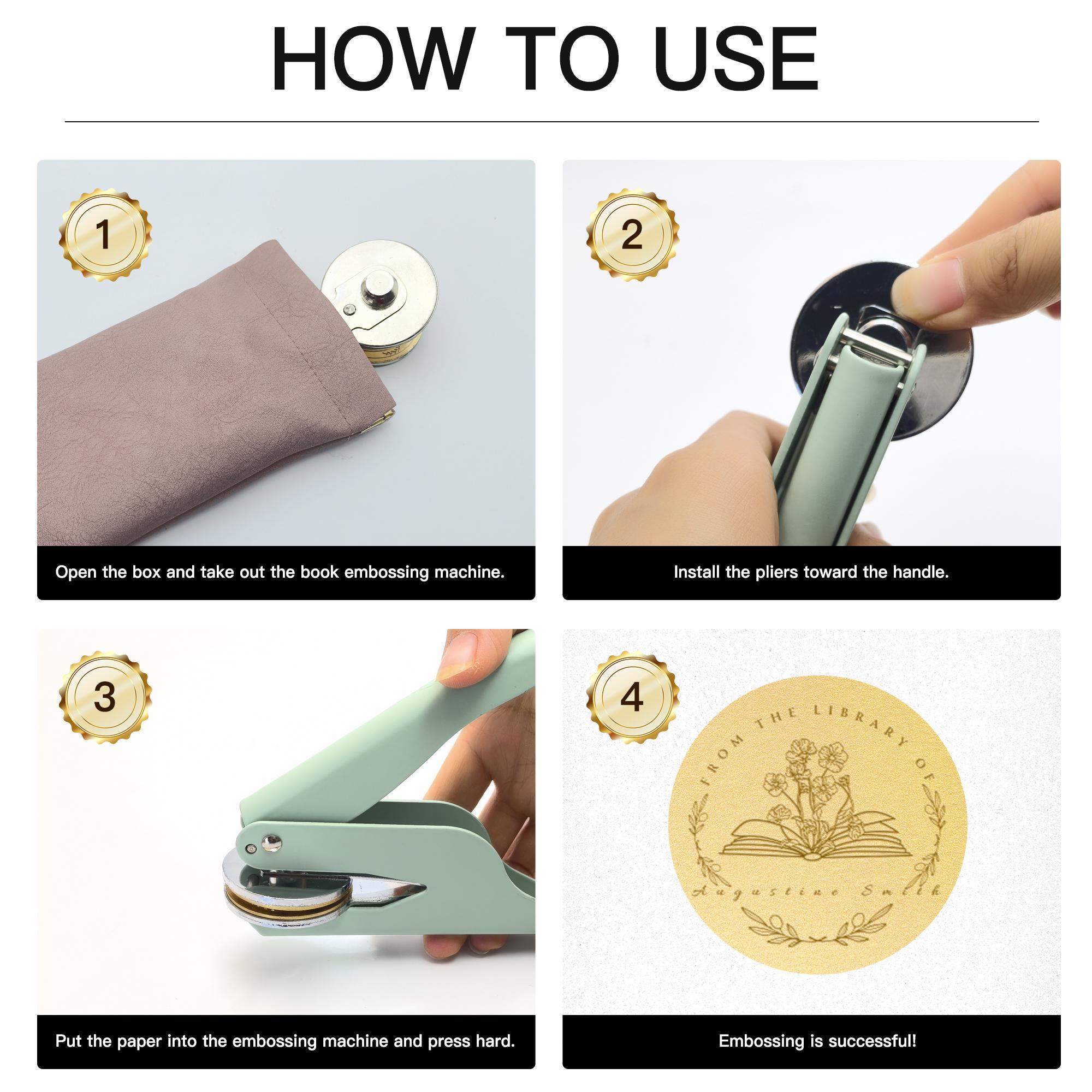 Diese Buchprägemaschine ist nicht nur ein schönes Geschenk für Buchliebhaber, Lehrer und Bibliothekare, sondern auch die beste Belohnung für Sie selbst. Sie vermittelt Ihnen jedes Mal, wenn Sie ein Buch umblättern, ein einzigartiges Gefühl der Zugehörigkeit und des Erfolgs. Anwendungsschritte:
