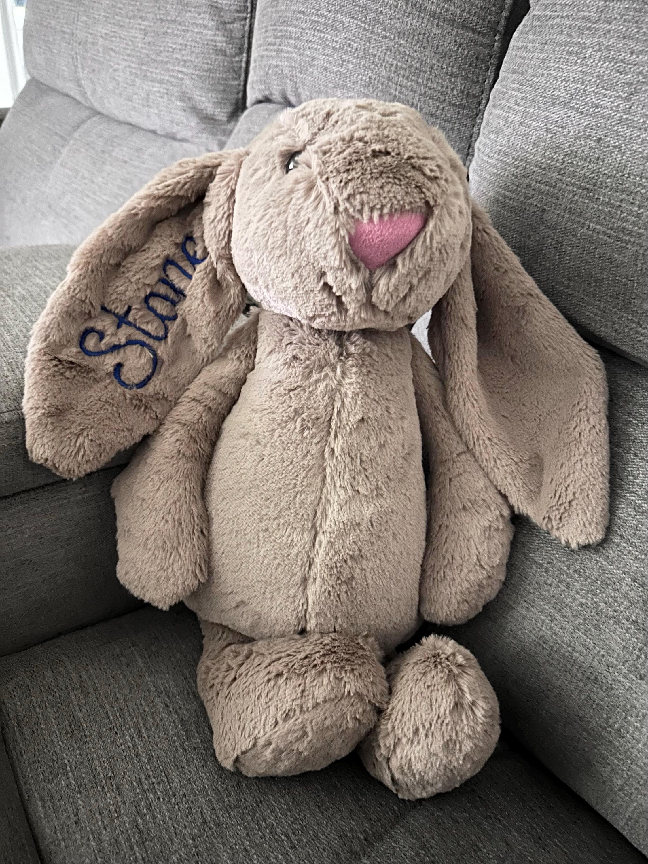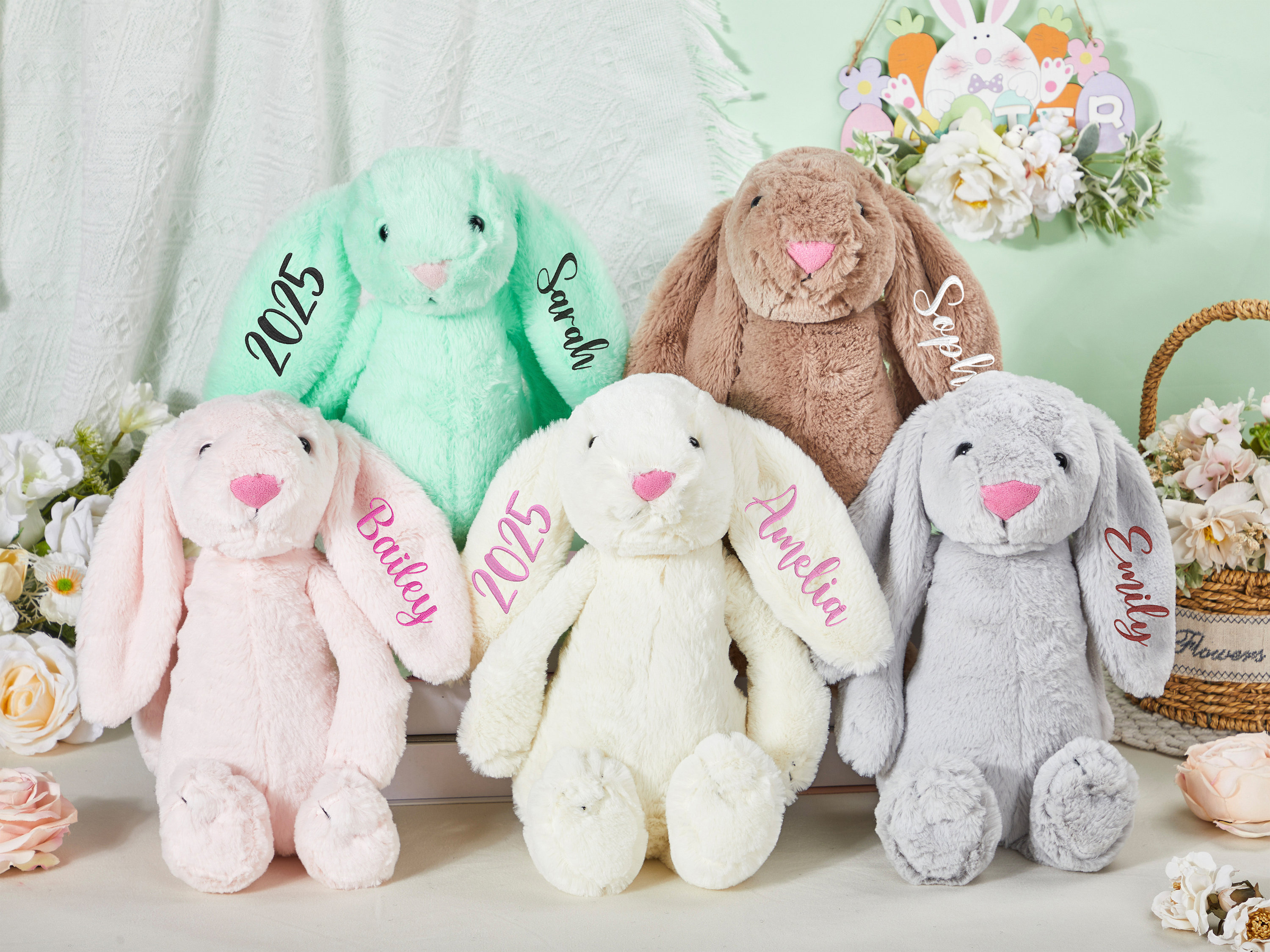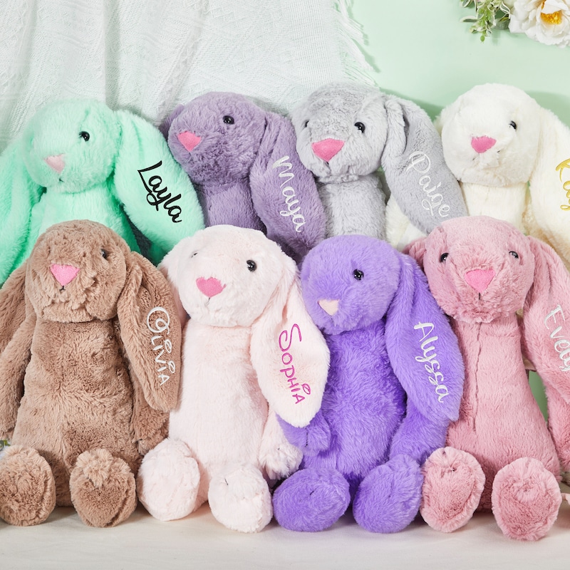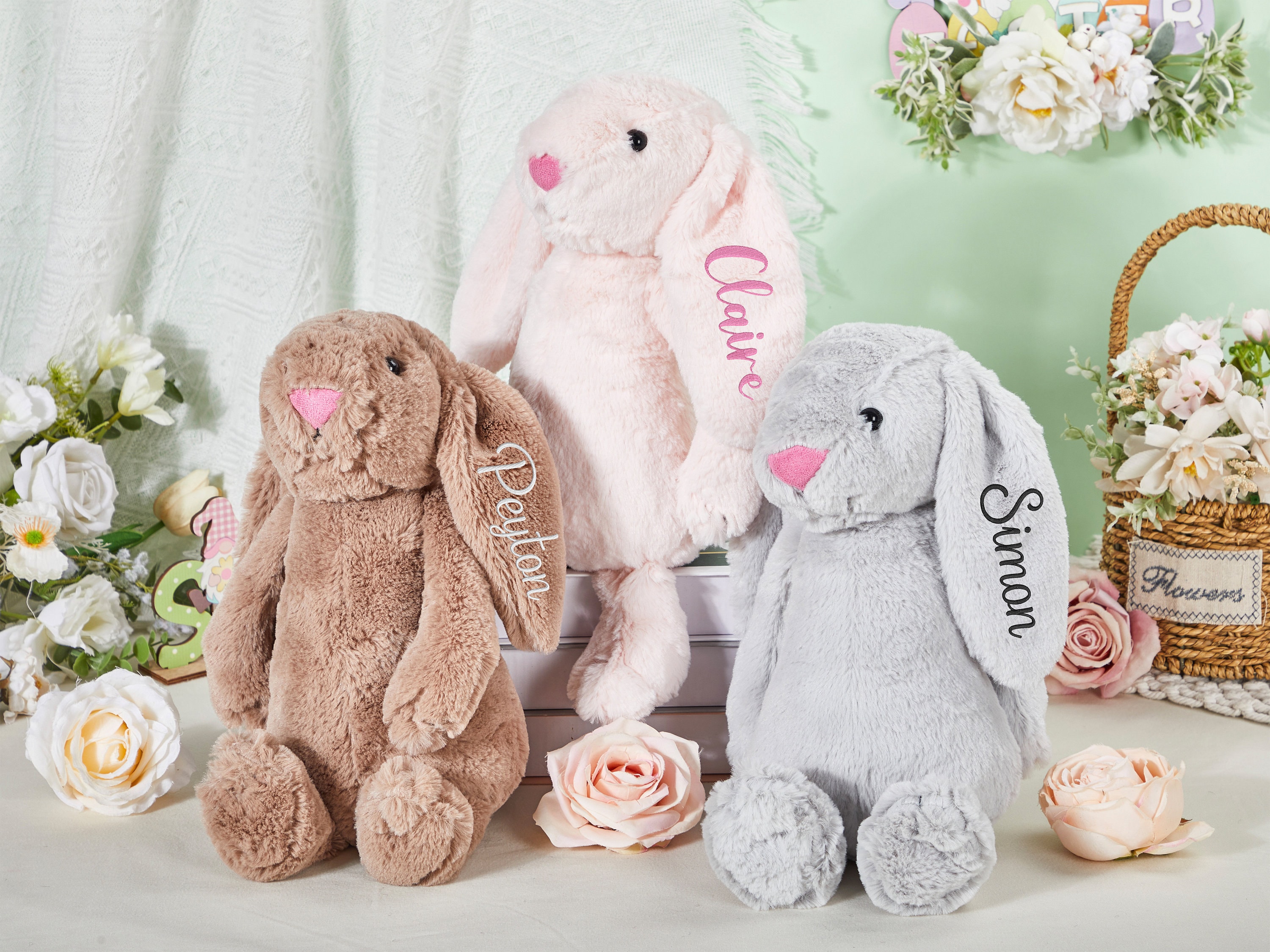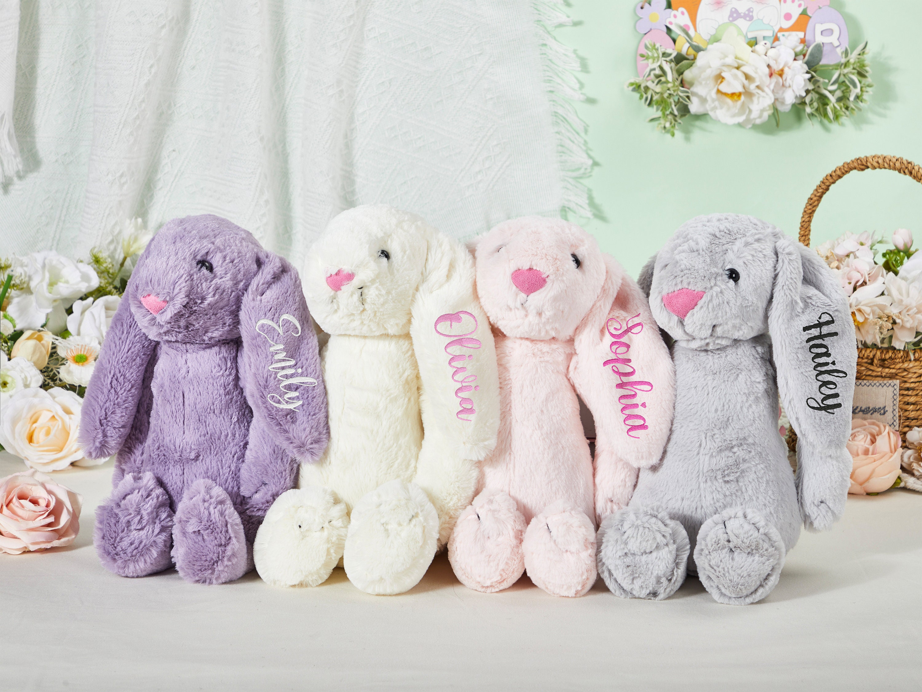 Dieser Plüschhase aus weichem Plüsch ist supersüß und das perfekte Geschenk zu Ostern oder zu jedem anderen Anlass. Der Name wird auf das Ohr genäht, was ihn zu einem einzigartigen Geschenk für dich macht!