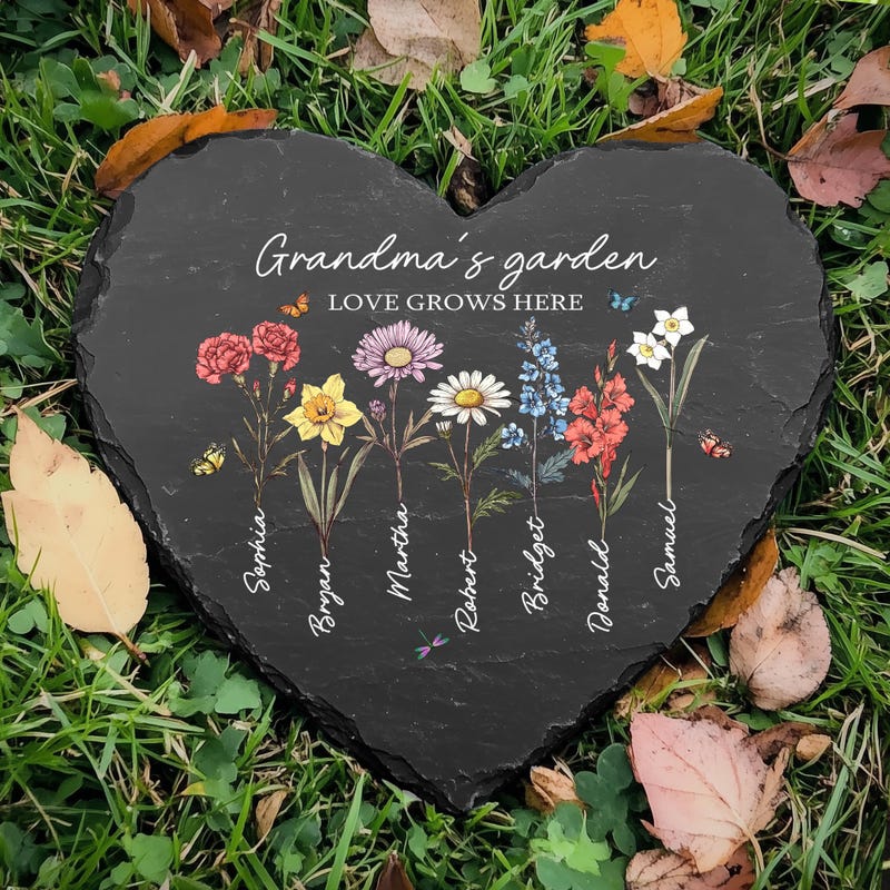 Personalisierter Omas Gartenstein, Liebe wächst hier Gartenstein Geschenk, Personalisierter Geburtsmonat Blumengartenstein, Muttertagsgeschenk 2025 RED666