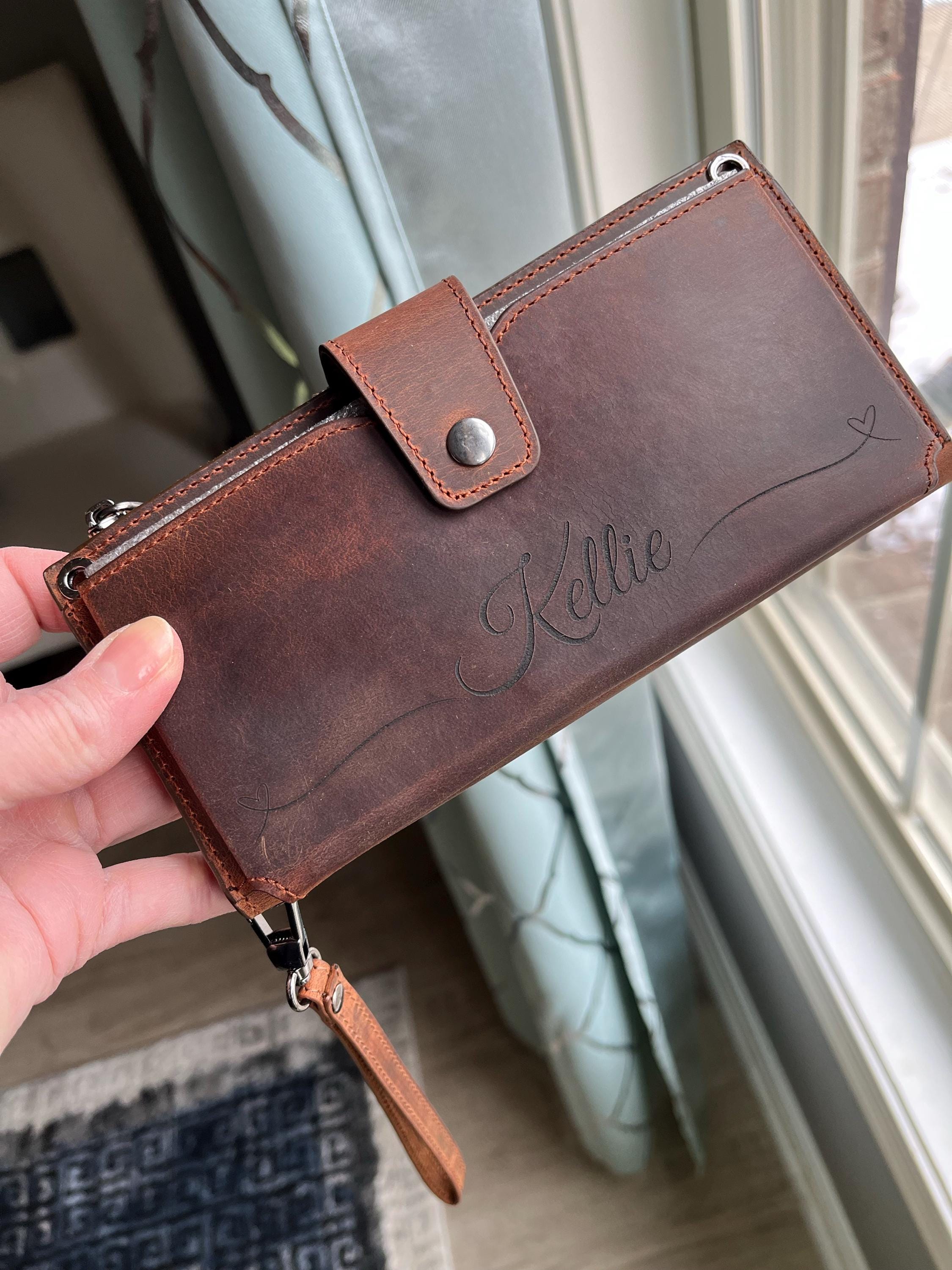 Mit Schulter- oder Handgelenksriemen lässt sich diese Geldbörse über der Schulter oder in der Hand tragen und ist somit ein ideales Accessoire für Ihren Alltag. Sie passt sowohl zu klassischen als auch zu modernen Stilen und ist dank der Personalisierungsoption ein liebevolles Geschenk für Sie selbst oder einen geliebten Menschen.