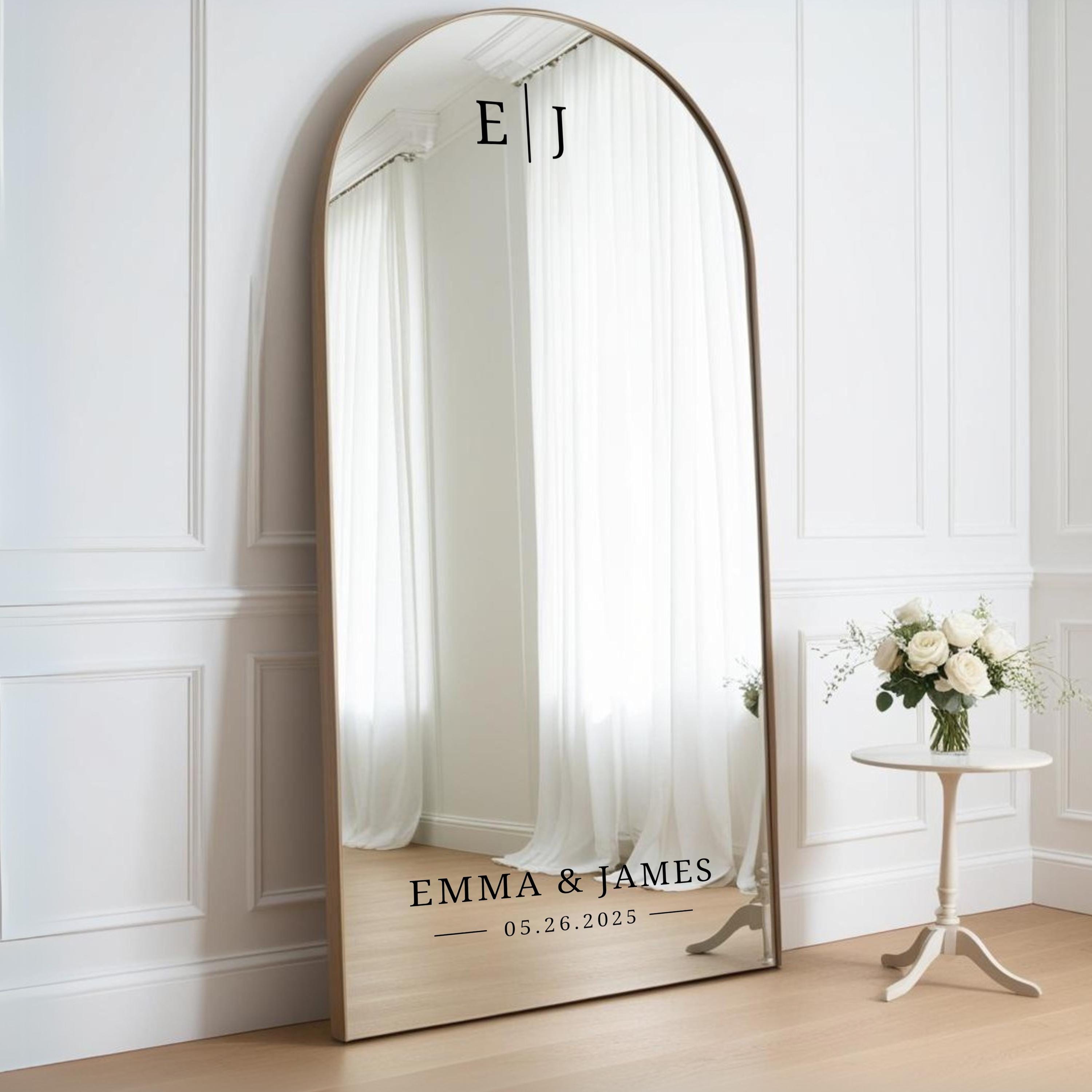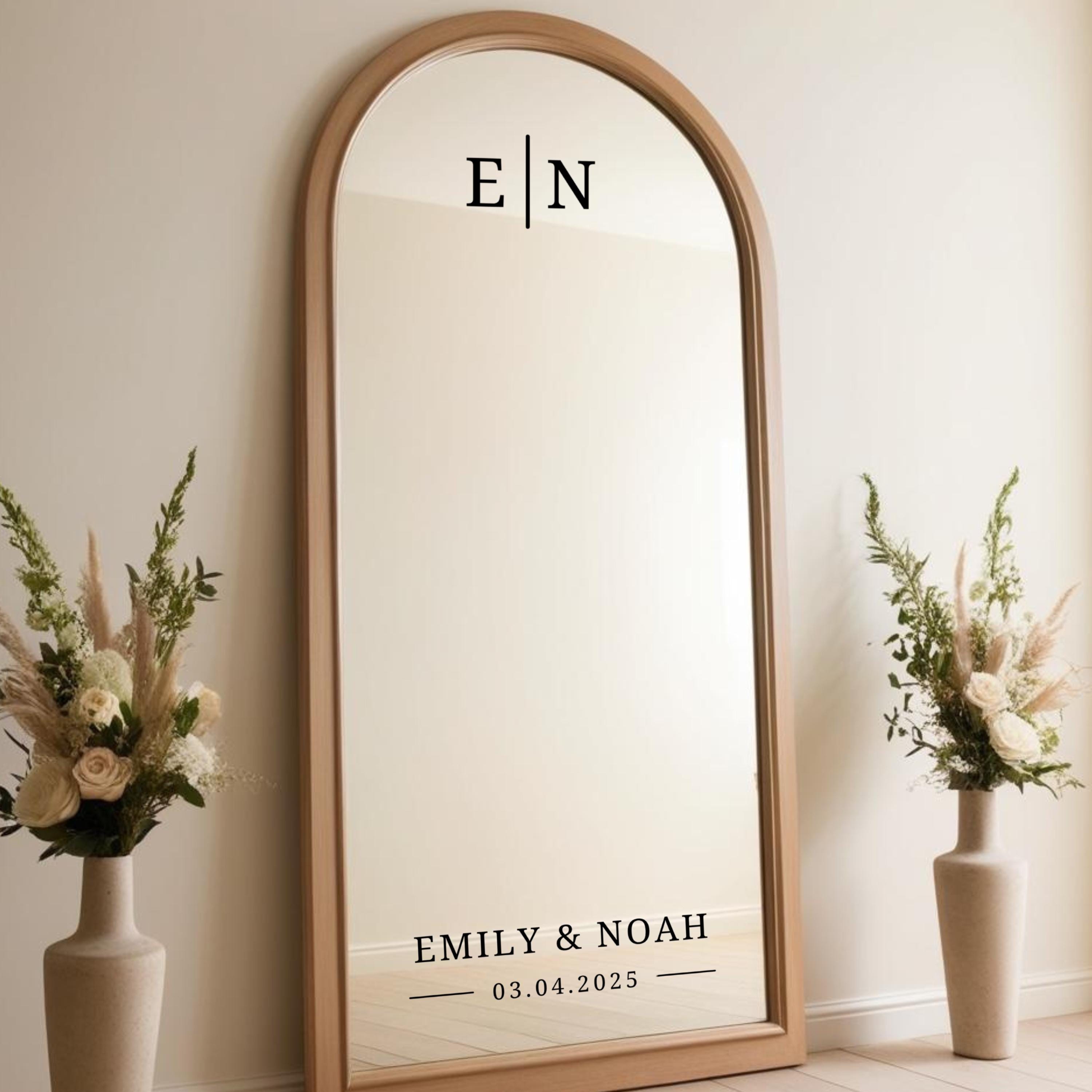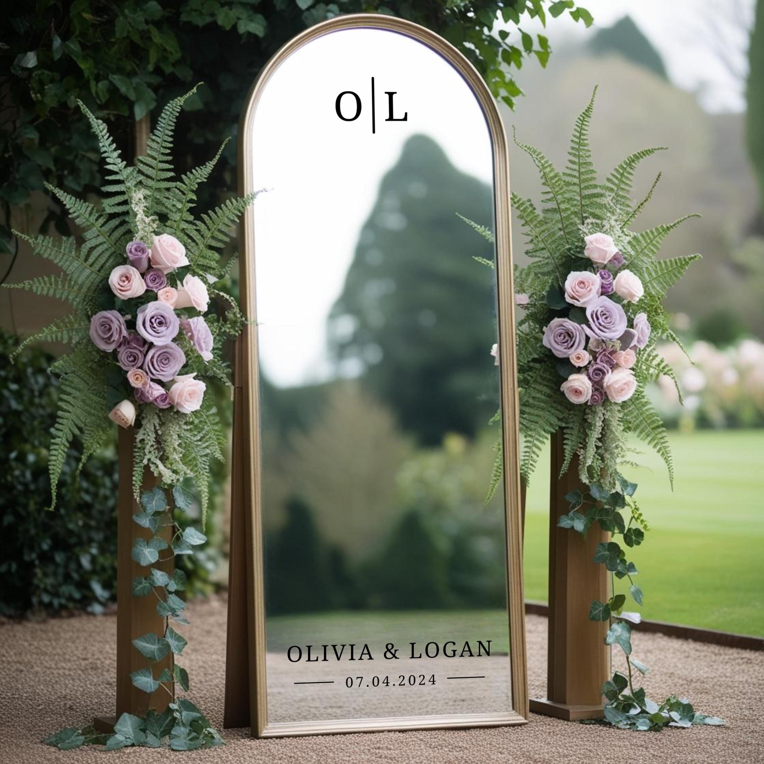 Werten Sie Ihre Hochzeitsdekoration mit einem zeitlosen, hochwertigen Hochzeitsspiegel-Aufkleber auf, der individuell für Sie angefertigt wird. Unsere Aufkleber sind auf schlichte Eleganz ausgelegt und verleihen Ihrem besonderen Tag eine persönliche, raffinierte Note – perfekt für Willkommensschilder, Sitzpläne und mehr.