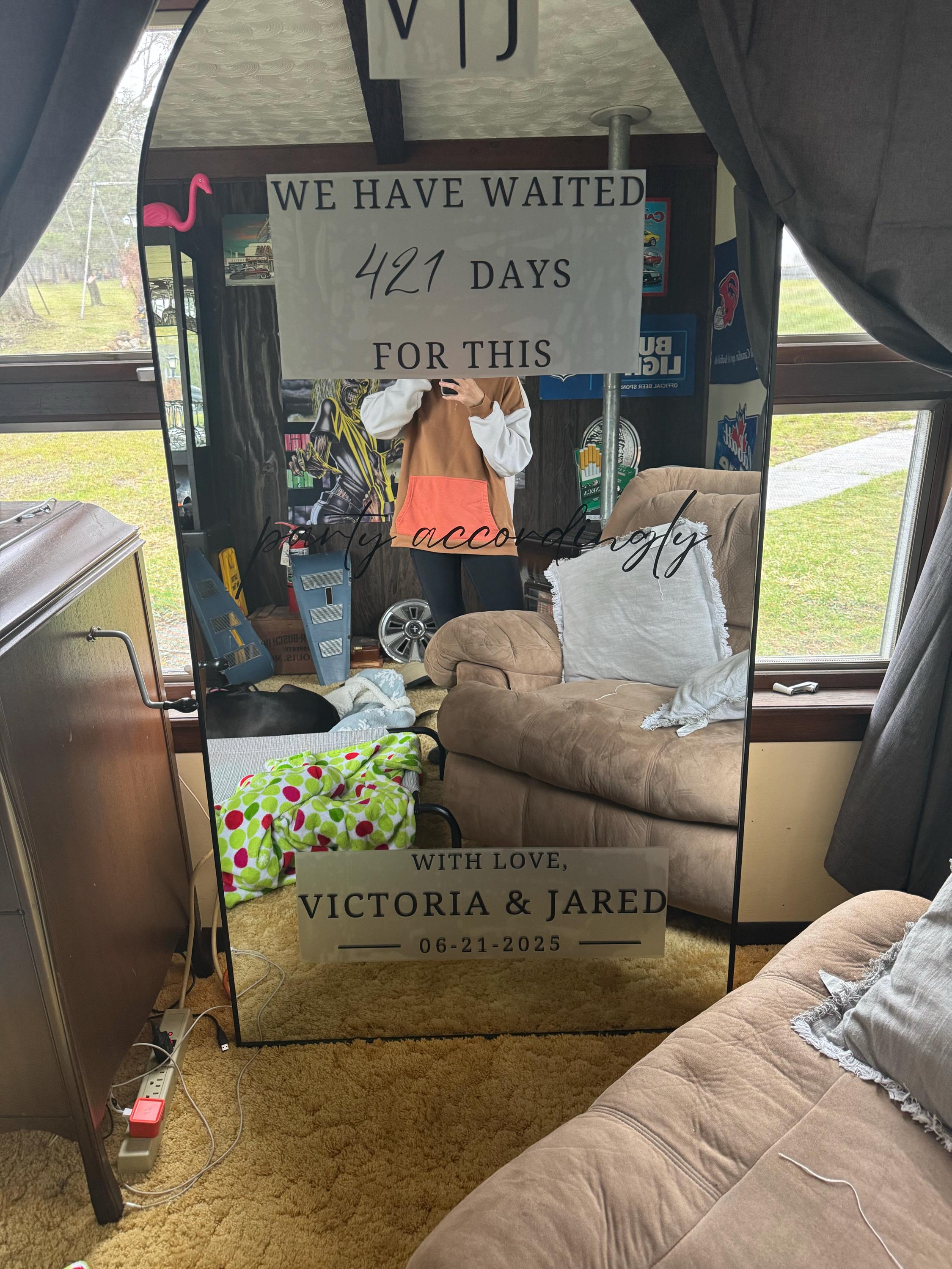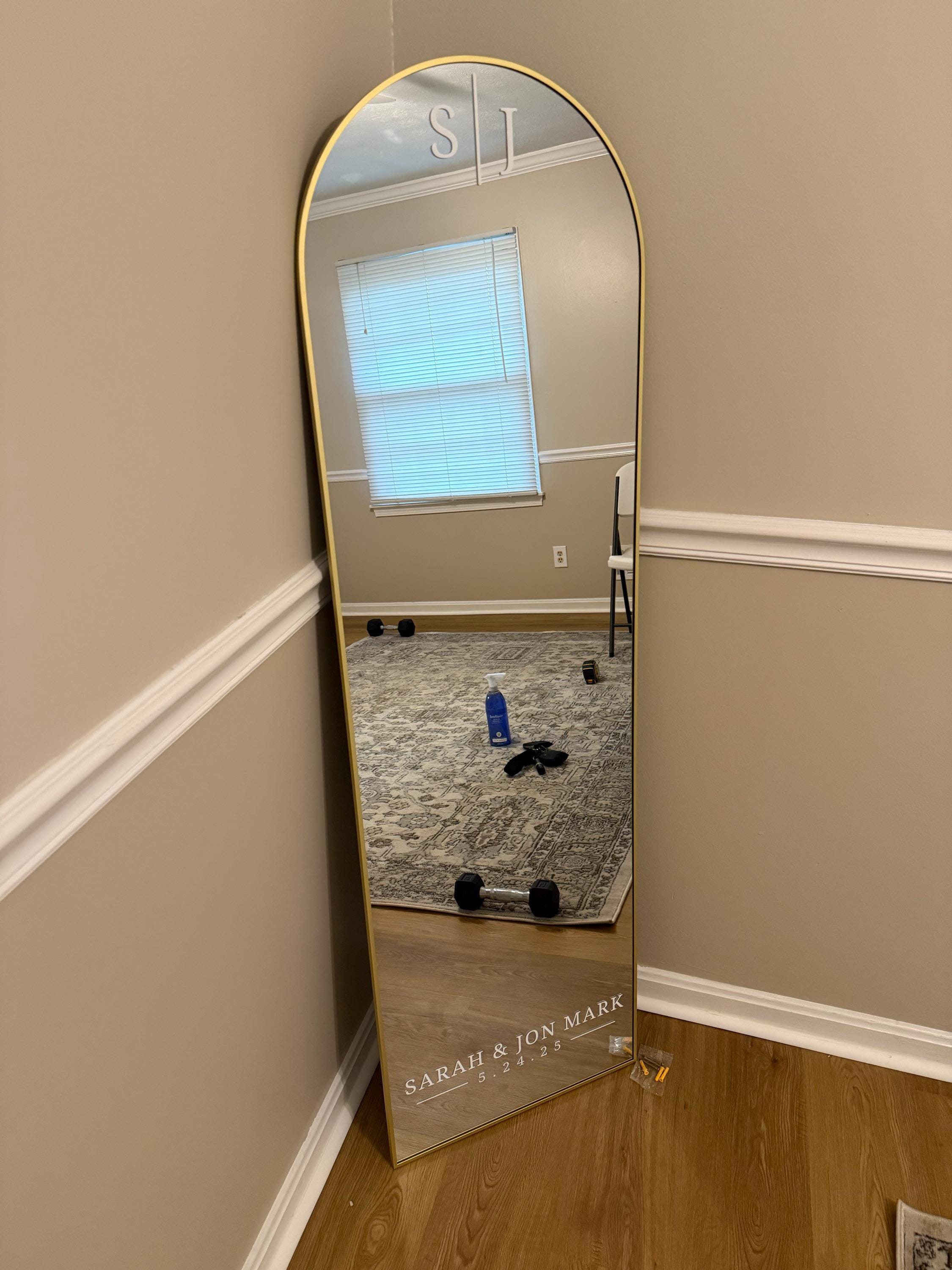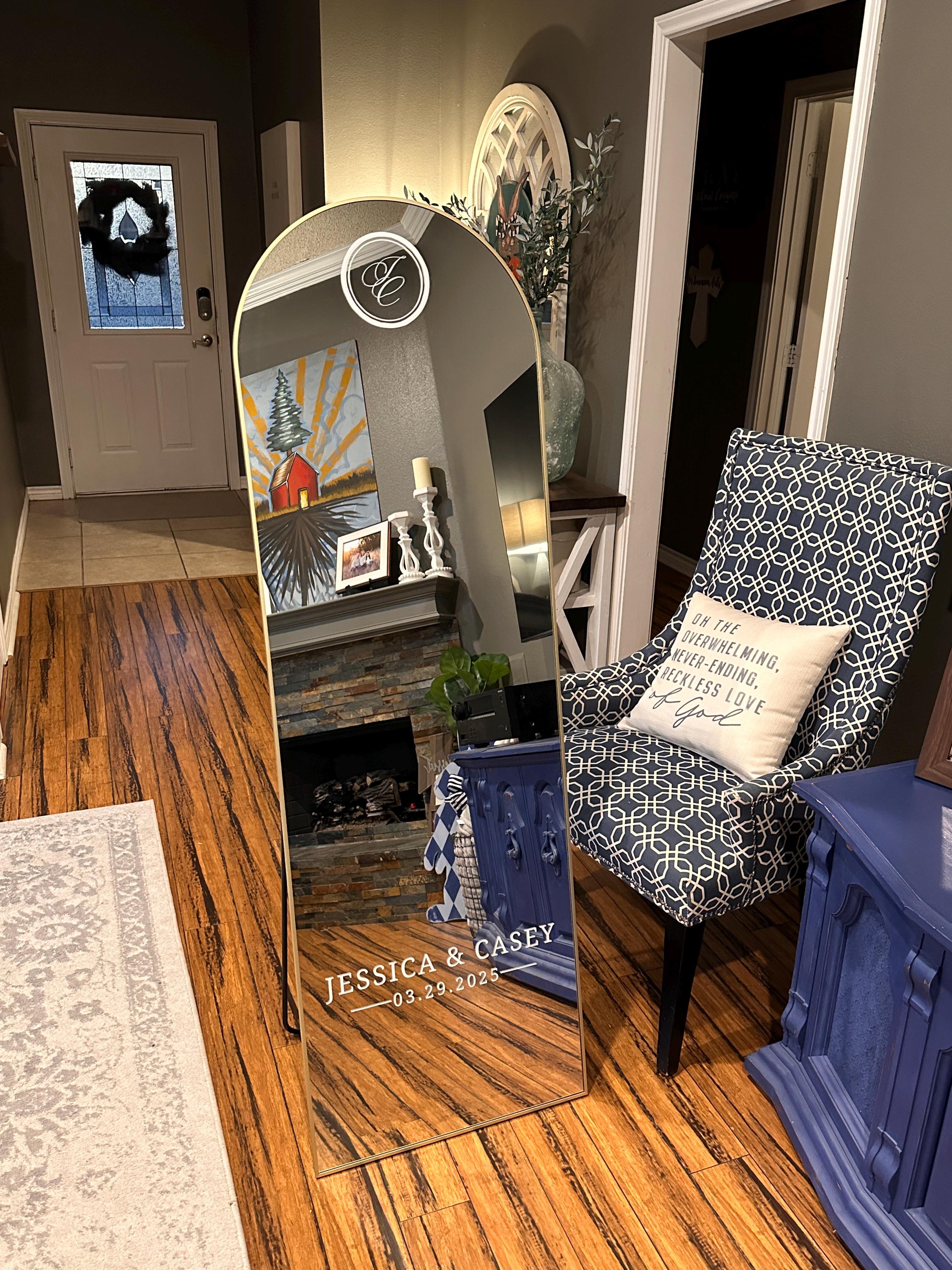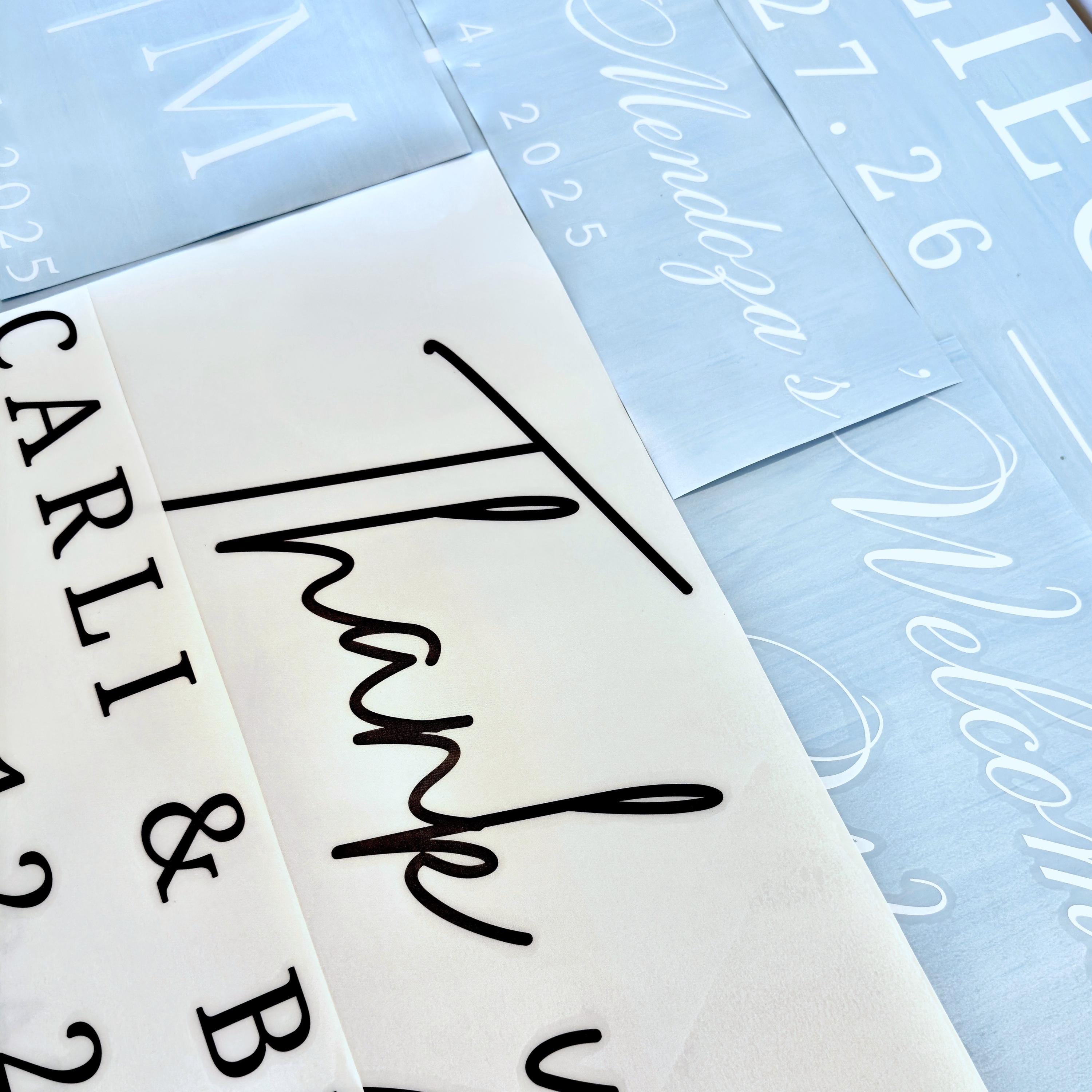 Werten Sie Ihre Hochzeitsdekoration mit einem zeitlosen, hochwertigen Hochzeitsspiegel-Aufkleber auf, der individuell für Sie angefertigt wird. Unsere Aufkleber sind auf schlichte Eleganz ausgelegt und verleihen Ihrem besonderen Tag eine persönliche, raffinierte Note – perfekt für Willkommensschilder, Sitzpläne und mehr.