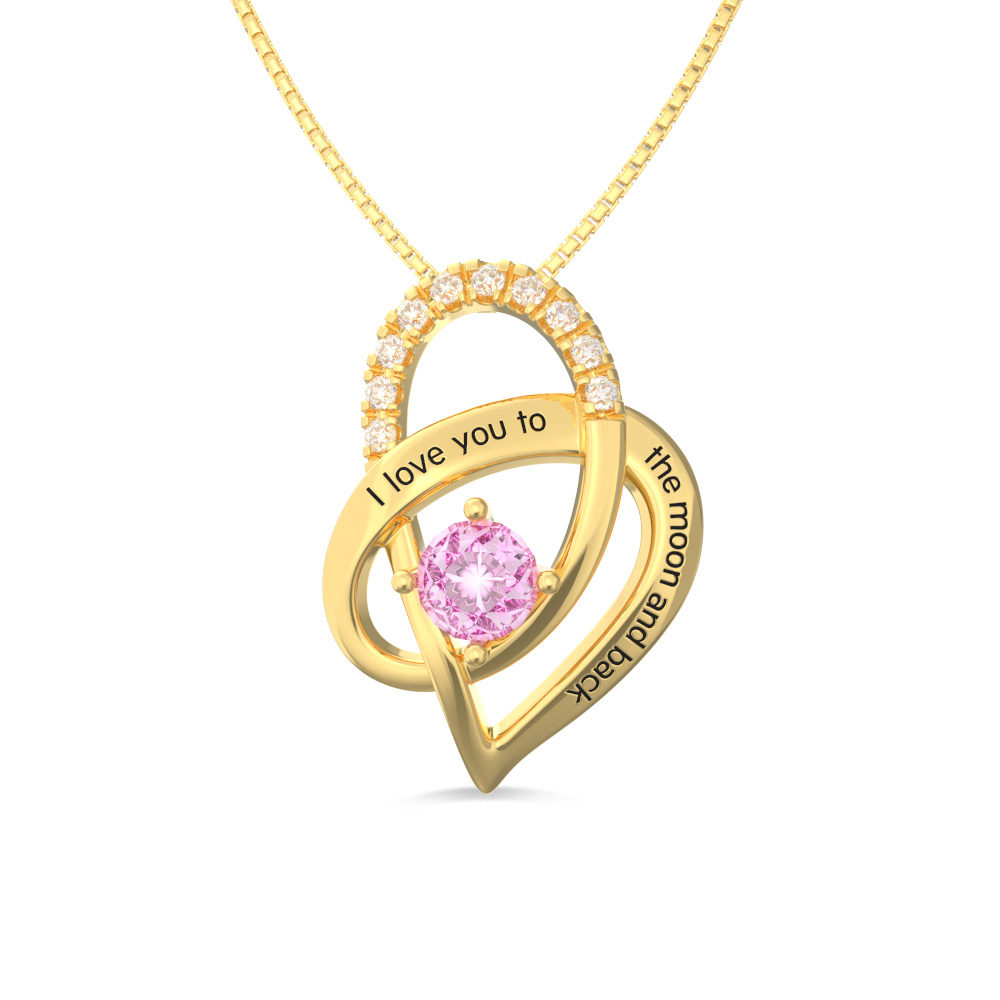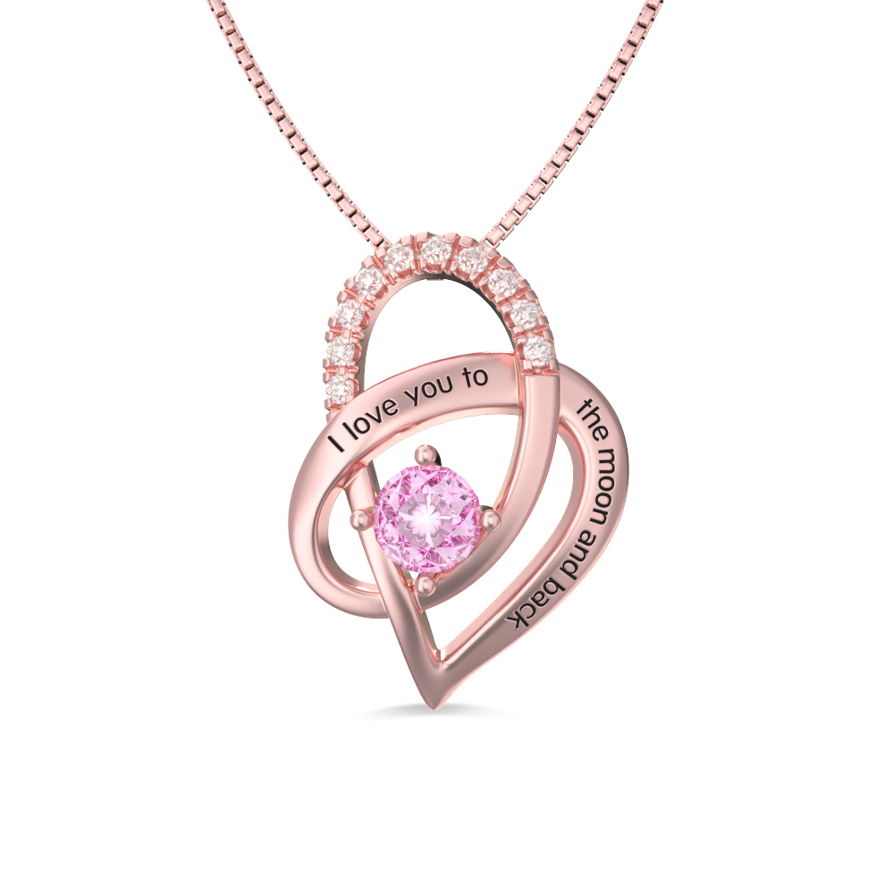 Diese "I liebe dich bis zum Mond & zurück"-Halskette mit Herzcharm teilt diese süße Botschaft, die immer geschätzt wird und gerne getragen wird. Sie können einen kundenspezifischen Geburtsstein auf dem Herzanhänger hinzufügen, um die Halskette einzigartig zu gestalten. Sagen Sie "Ich liebe dich" auf nur mehr als eine Art und Weise, und zwar mit dieser Liebeshalskette.