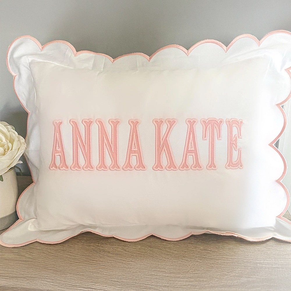 Unsere neuen Kissenbezüge mit gewelltem Rand und besticktem Rand sind das perfekte Geschenk zur Vervollständigung des süßen Babyzimmers!! Die Kissenbezüge bestehen aus 100 % Baumwolle.