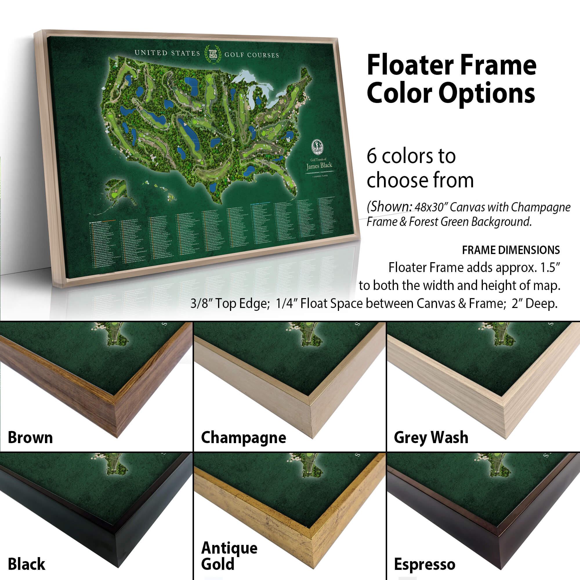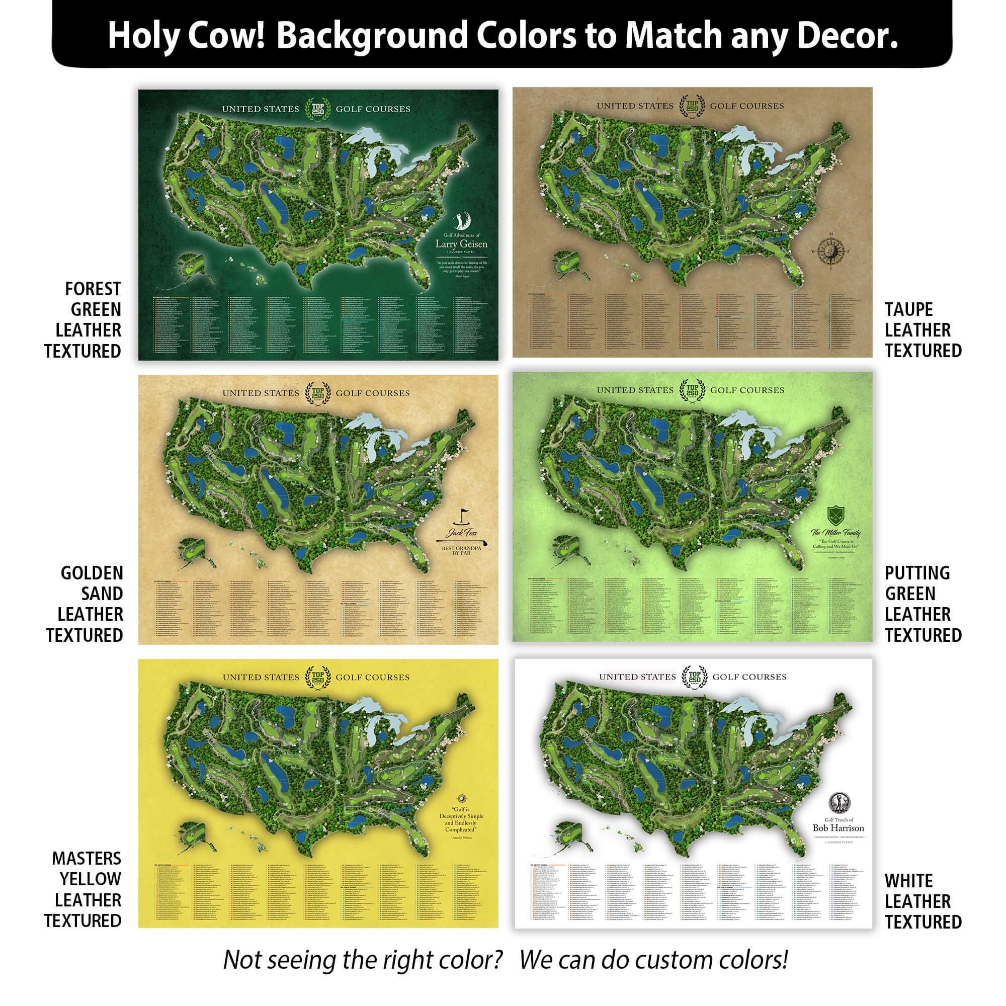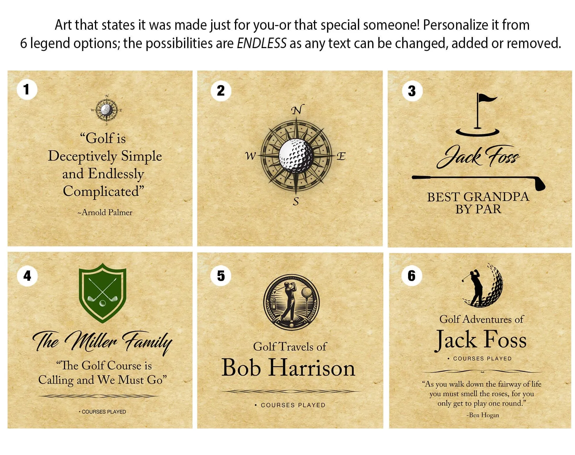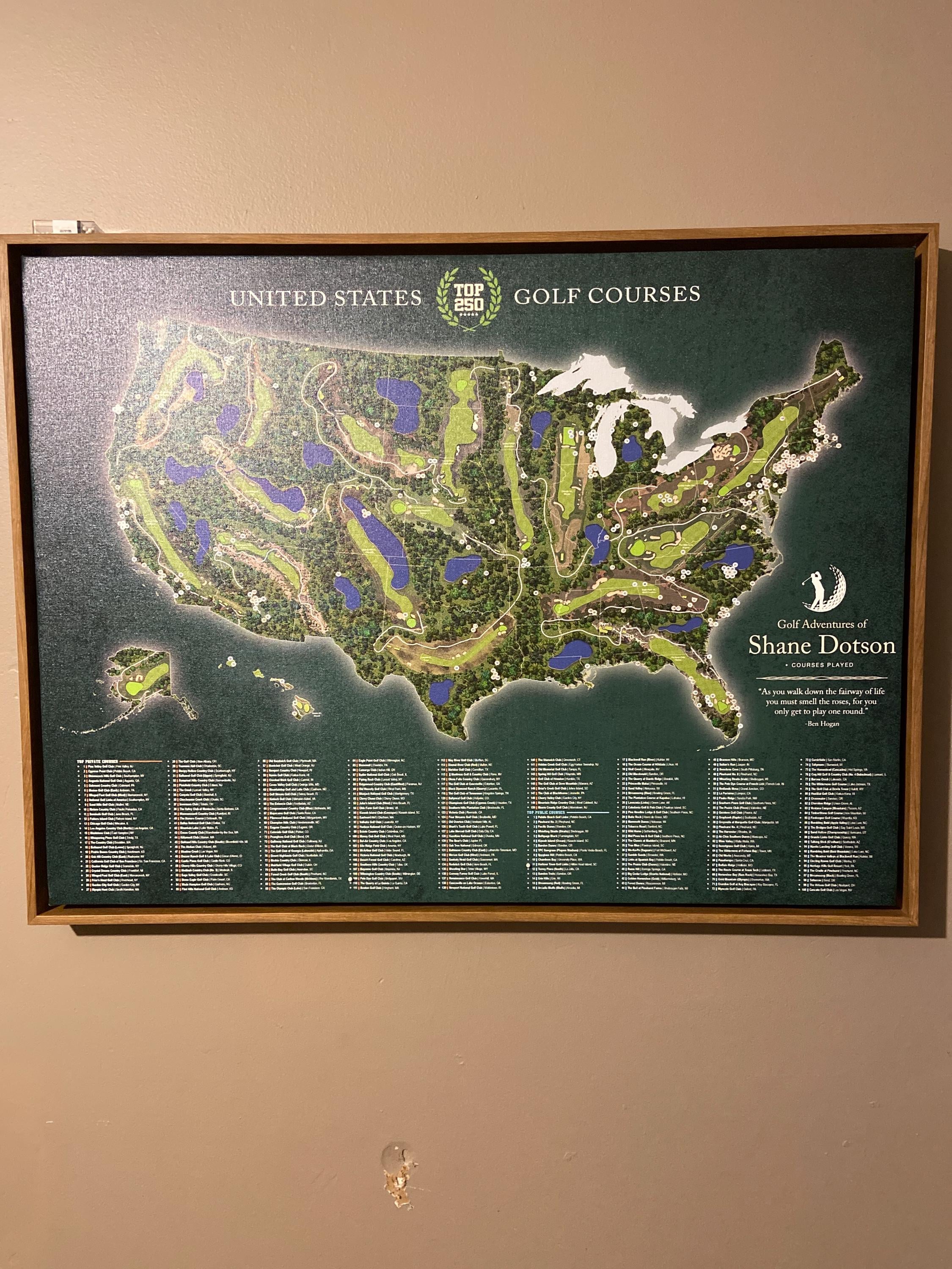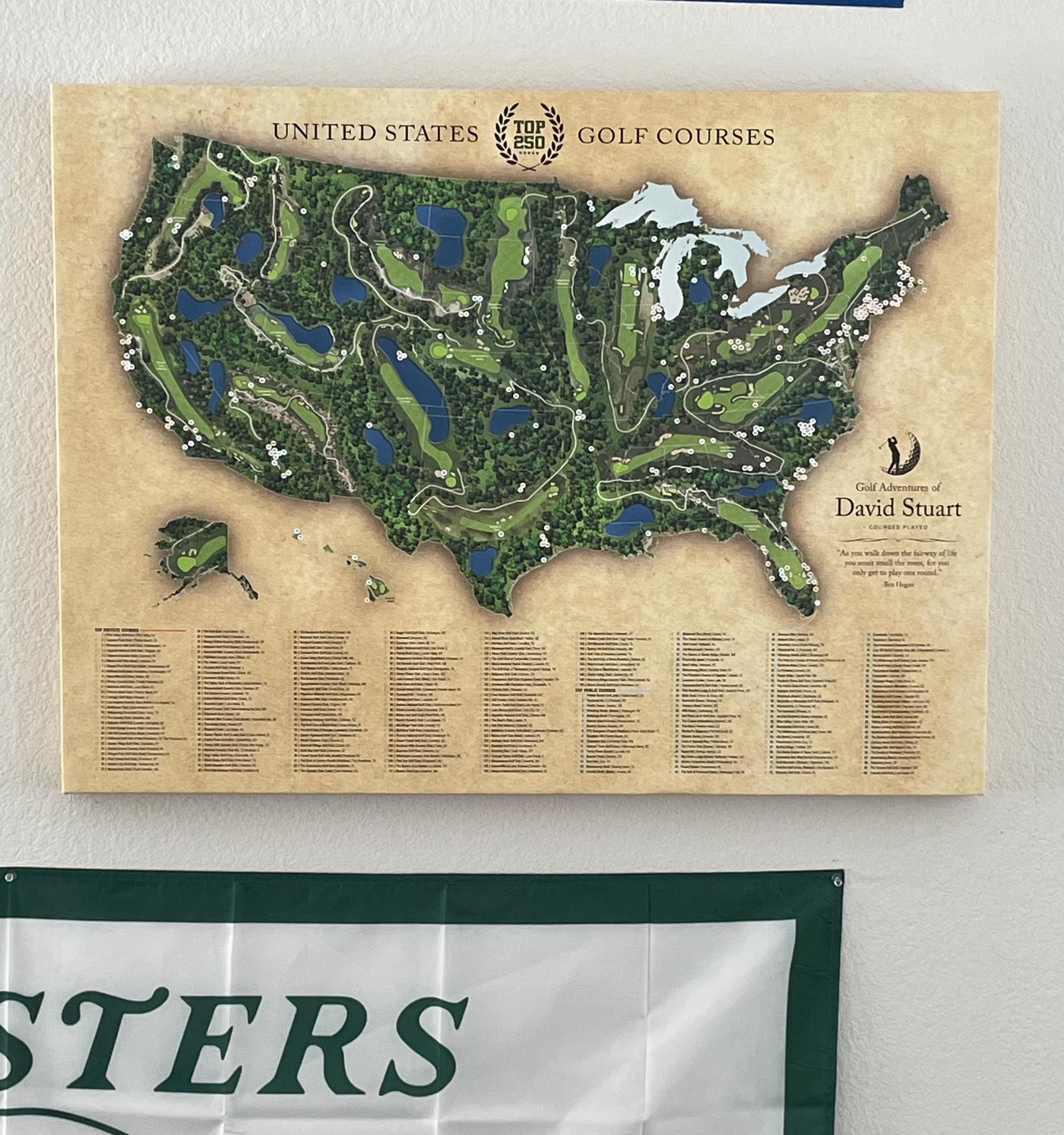 Unsere Golfplatzkarte zeigt die 250 besten Golfplätze der USA – 150 private und 100 öffentliche Plätze. Die Lage jedes Platzes ist auf der Karte eingezeichnet, die außerdem 18 der besten Golflöcher Amerikas als Hintergrund zeigt. Nutzen Sie die Karte, um gespielte Golfplätze mit weißen, golfballähnlichen Stecknadeln zu verfolgen, oder verwenden Sie diese sorgfältig gestaltete Illustration einfach als schönes Wandbild für Zuhause oder das Büro. Das perfekte Geschenk für Golfer und ein toller Gesprächsaufhänger. Erhältlich in sechs Farben, passend zu jeder Einrichtung. Hergestellt aus hochwertigem Canvas. Legenden und Zitate können kostenlos personalisiert werden, um die Karte zu einem wirklich persönlichen Geschenk zu machen! Erhältlich in den Formaten Hängefertig, gerahmt und gerollt (DIY). Hergestellt in den USA!