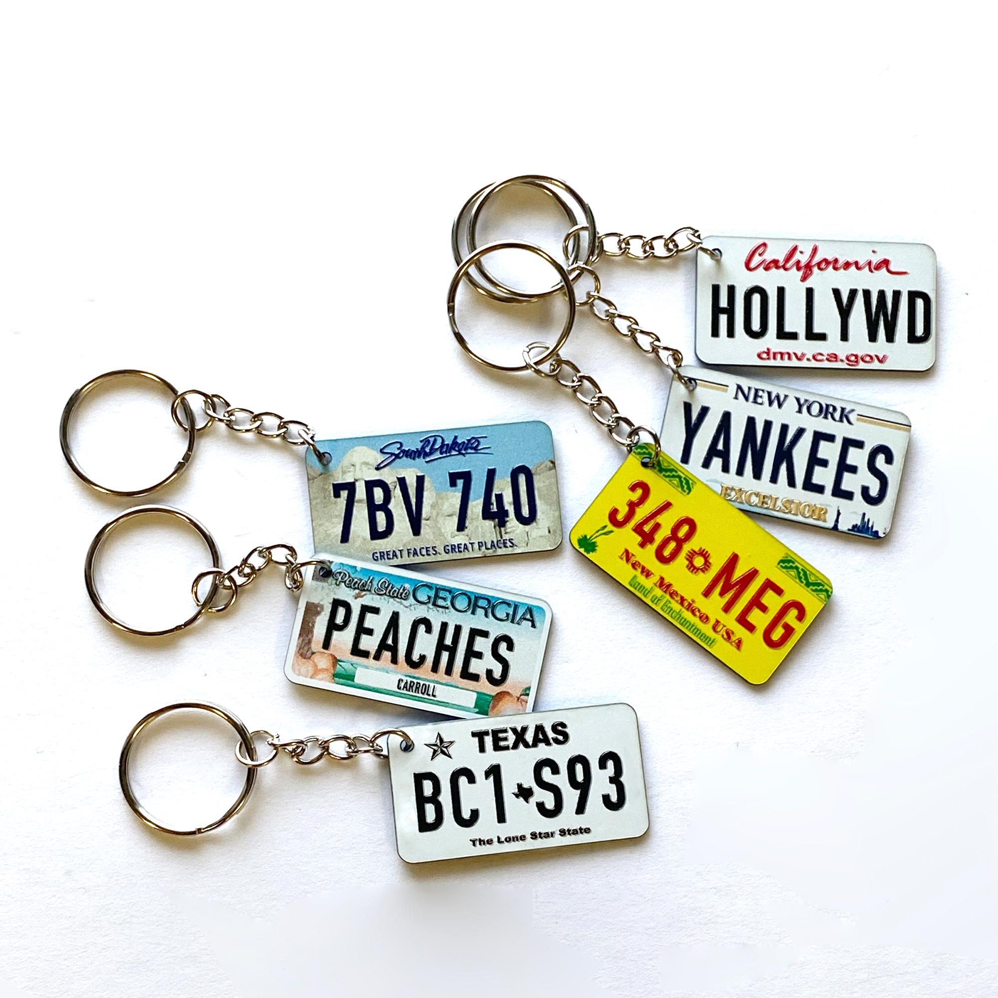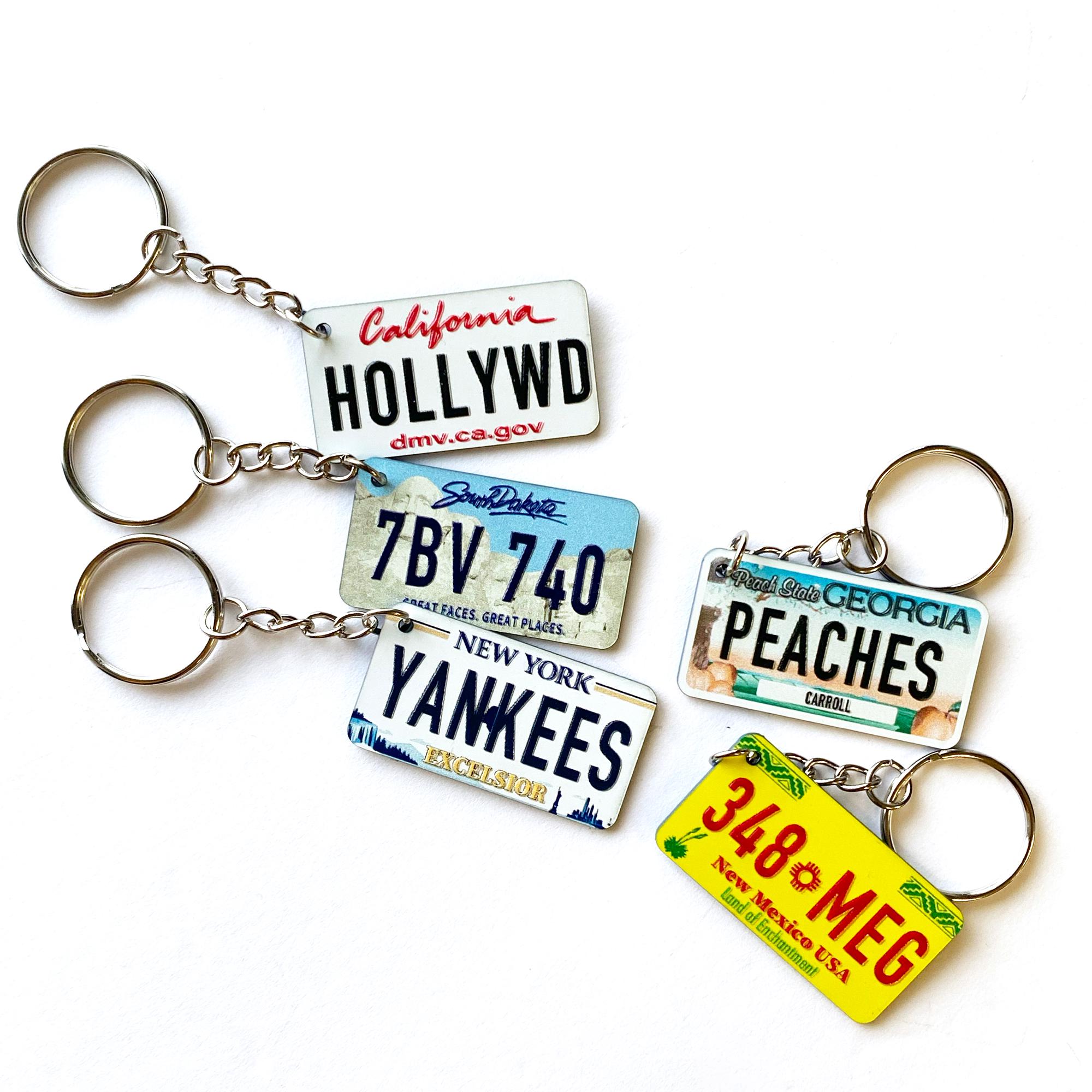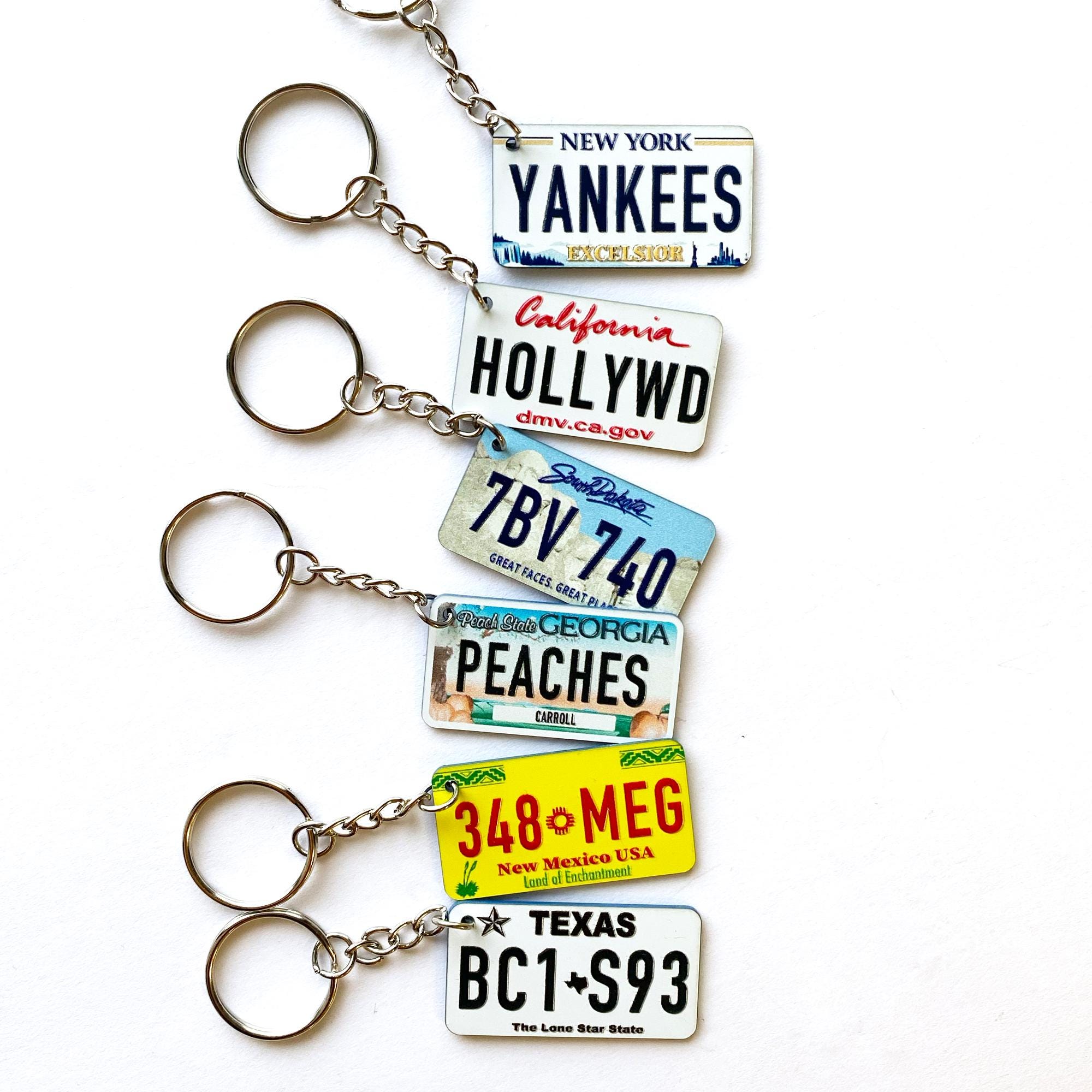 Tragen Sie ein Stück Americana mit sich! Dieser Schlüsselanhänger mit US-Nummernschild kann mit Ihrem Namen oder Text personalisiert werden und ist ein einzigartiges Accessoire für jeden Autoliebhaber.