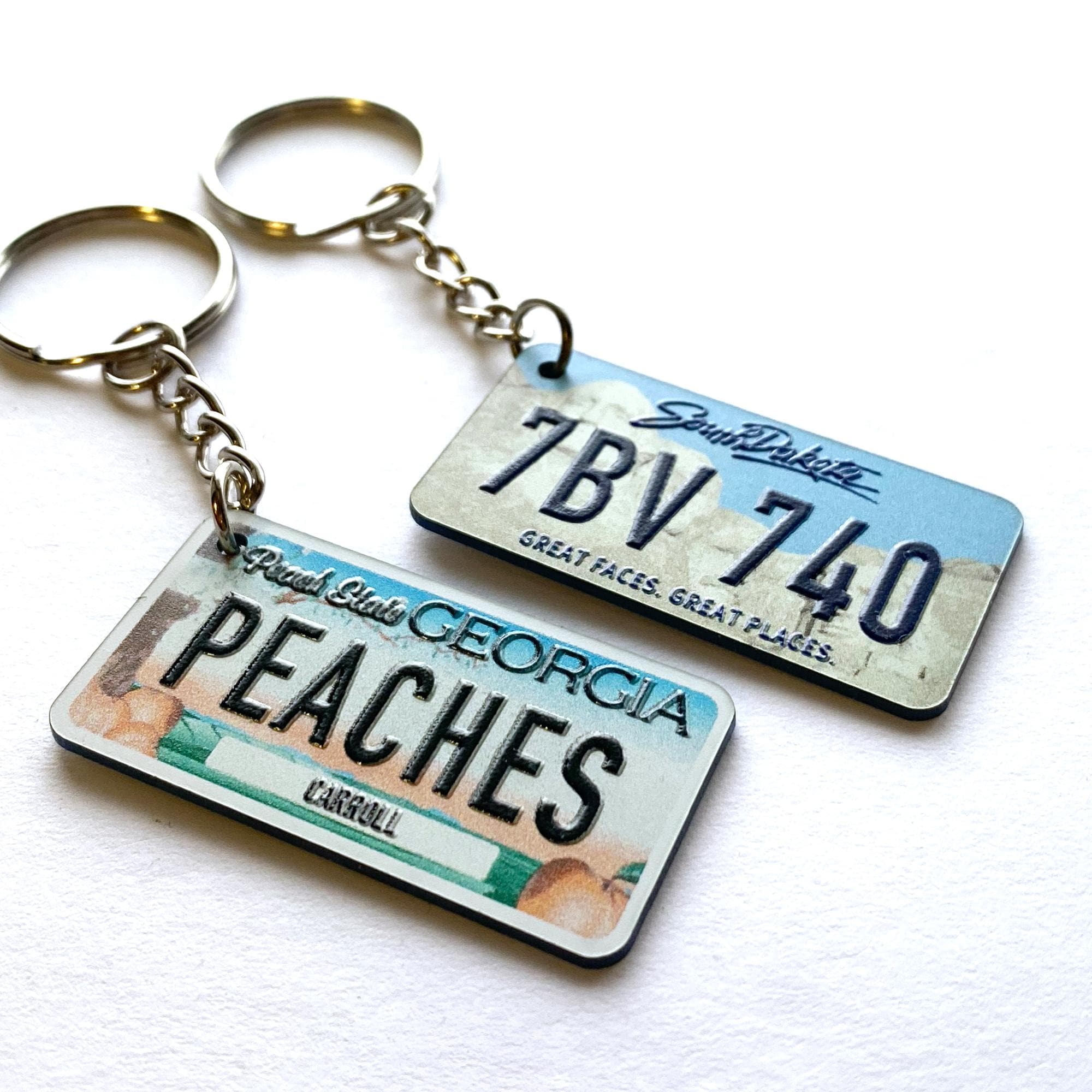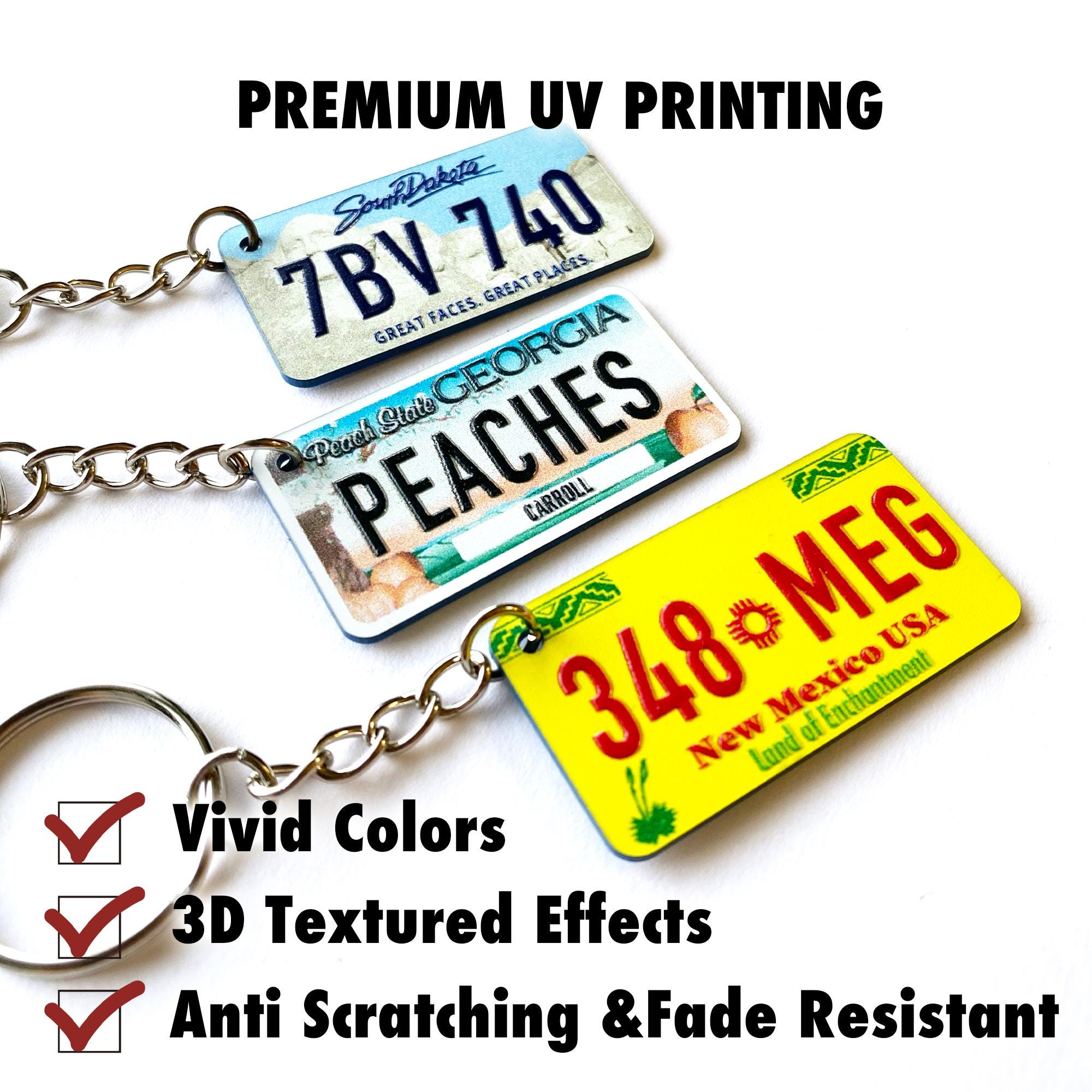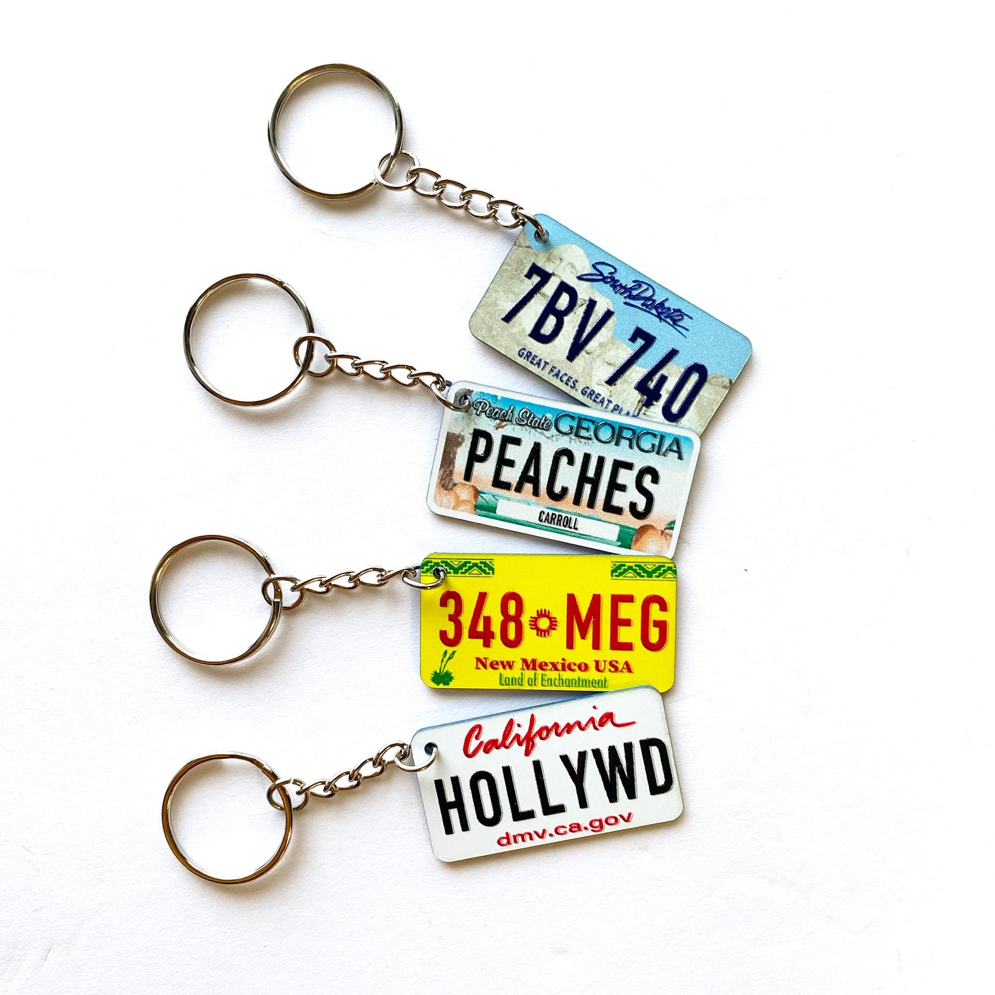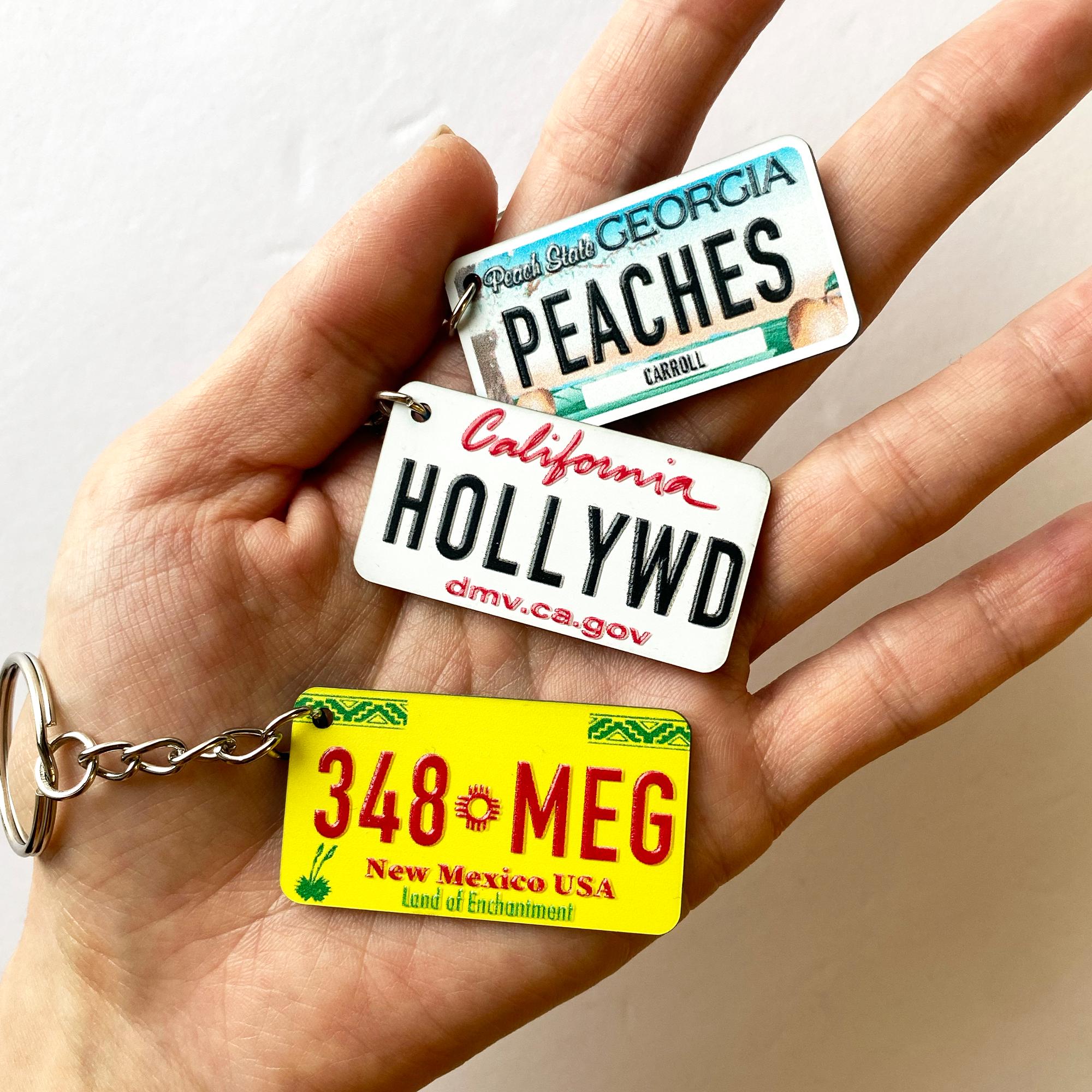 Tragen Sie ein Stück Americana mit sich! Dieser Schlüsselanhänger mit US-Nummernschild kann mit Ihrem Namen oder Text personalisiert werden und ist ein einzigartiges Accessoire für jeden Autoliebhaber.