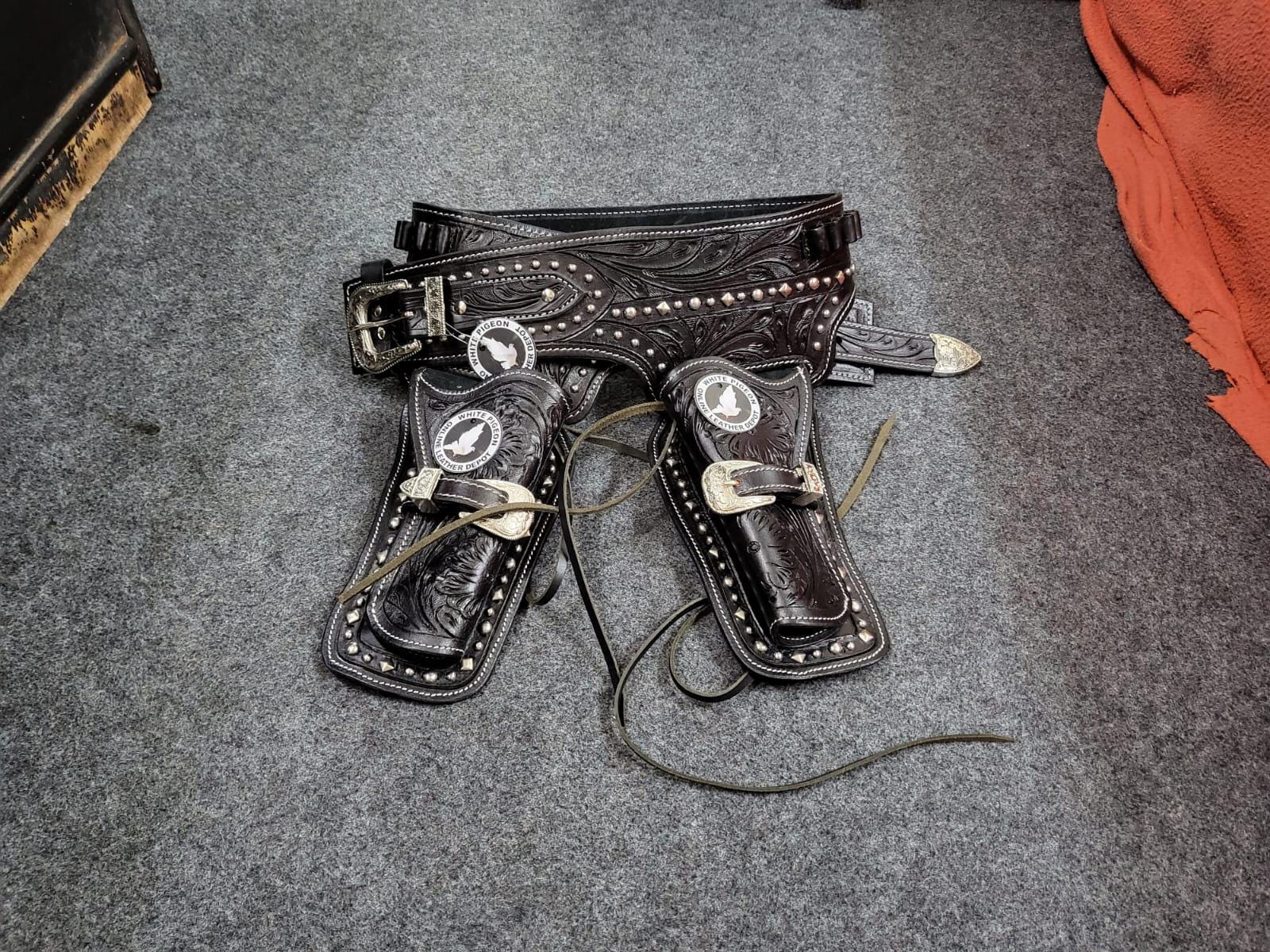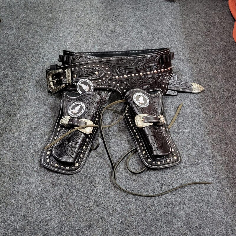 HANDGEFERTIGTE HANDWERKSKUNST – Verdoppeln Sie Ihre Feuerkraft mit diesem Westernholster aus geprägtem Leder für Rechts- und Linkshänder in der Größe für Revolver der Kaliber .22, .38, .44, .45, .357 und .358, passend für die meisten Lauflängen von 4 bis 8 Zoll.