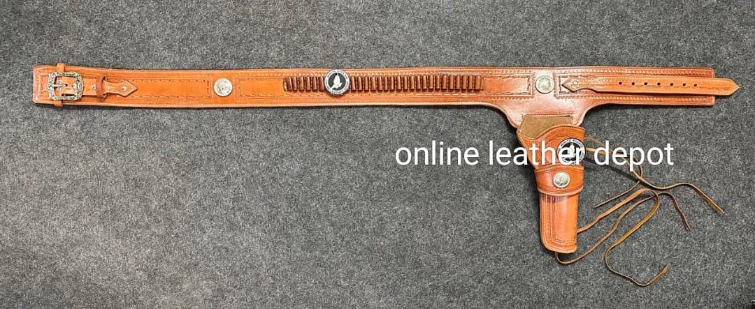 Handgefertigtes Lederholster. Hergestellt aus Herman Oak Leder. Passend für alle Revolver der Standardgrößen 357, 44 und 45. Passend für einen Revolver mit 6-Zoll-Lauf. Munitionsschlaufen für 30 Schuss.