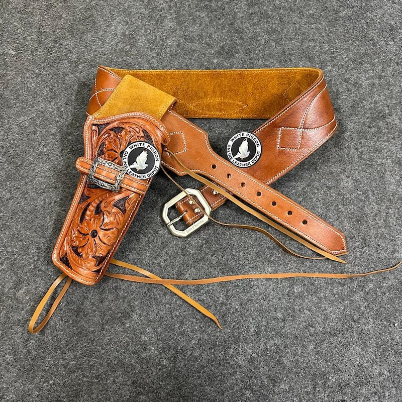 HANDGEFERTIGTE HANDWERKSKUNST – Verdoppeln Sie Ihre Feuerkraft mit diesem Westernholster aus geprägtem Leder für Rechts- und Linkshänder in der Größe für Revolver der Kaliber .22, .38, .44, .45, .357 und .358, passend für die meisten Lauflängen von 4 bis 8 Zoll.