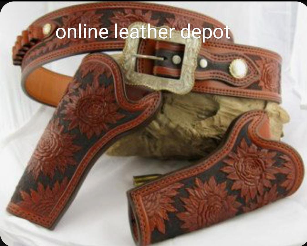 Handgefertigtes Lederholster. Hergestellt aus Herman Oak Leder. Passend für alle Revolver der Standardgrößen 357, 44 und 45. Passend für einen Revolver mit 6-Zoll-Lauf. Munitionsschlaufen für 30 Schuss.