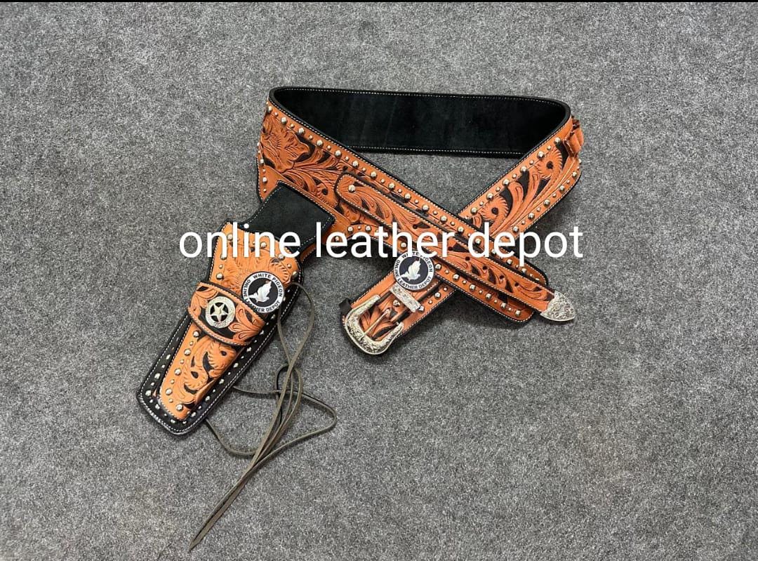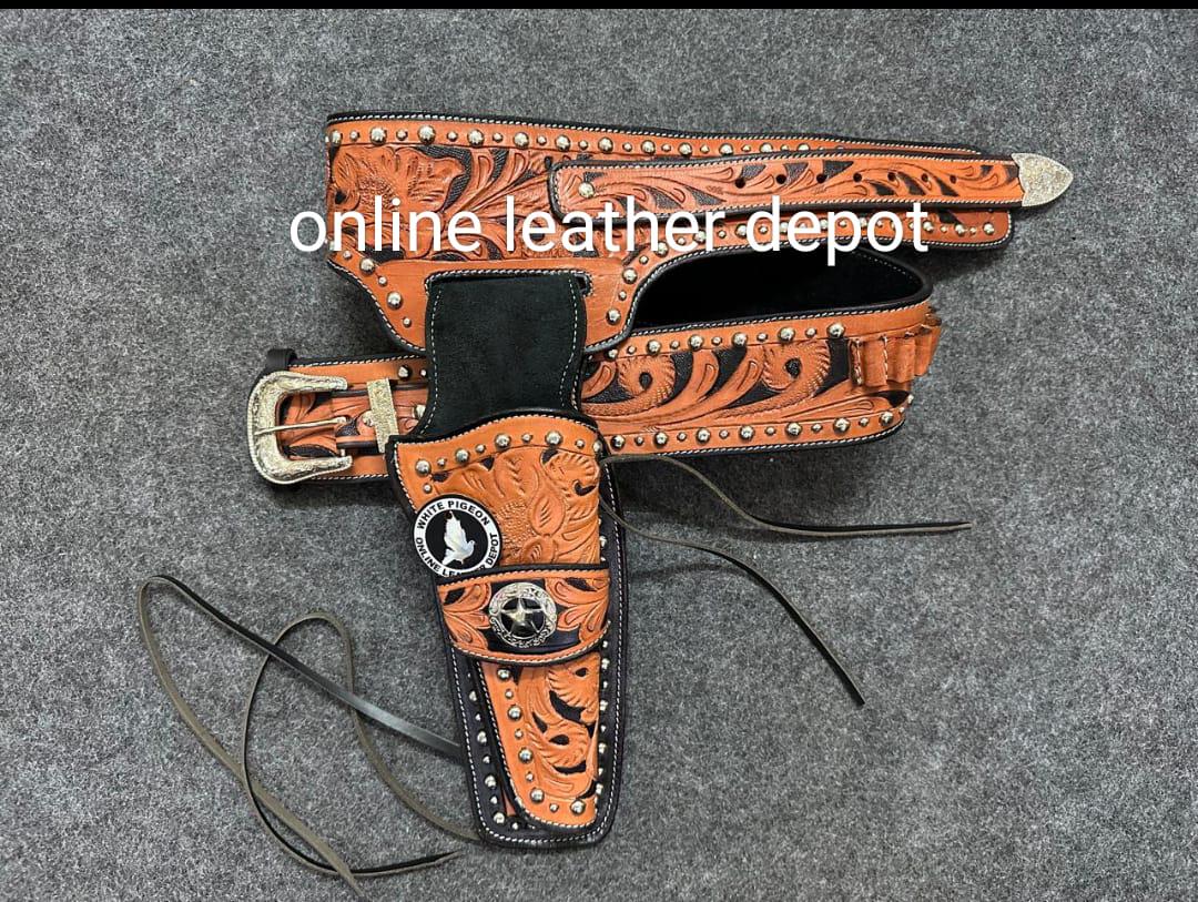 HANDGEFERTIGTE HANDWERKSKUNST – Verdoppeln Sie Ihre Feuerkraft mit diesem Westernholster aus geprägtem Leder für Rechts- und Linkshänder in der Größe für Revolver der Kaliber .22, .38, .44, .45, .357 und .358, passend für die meisten Lauflängen von 4 bis 8 Zoll.