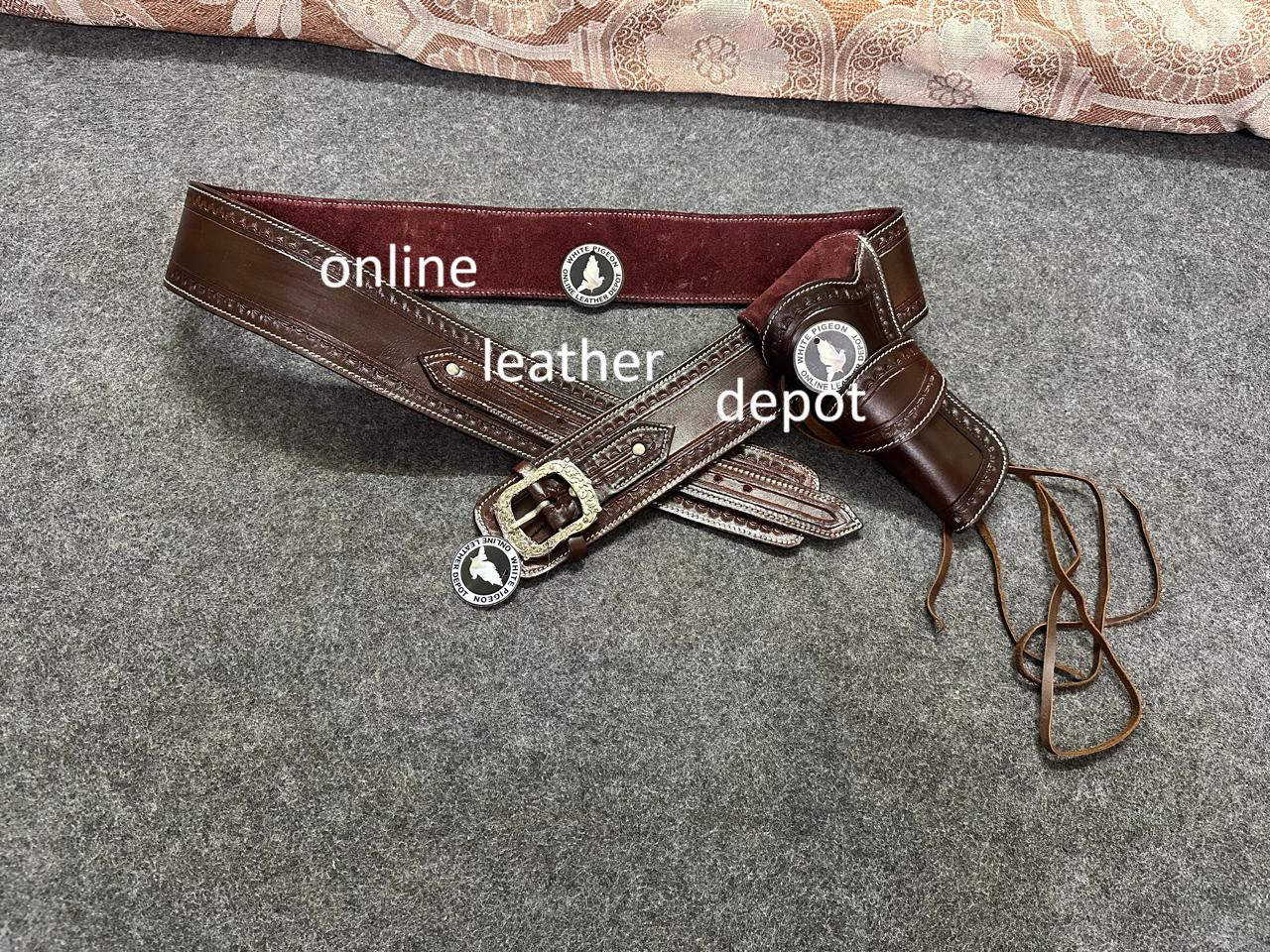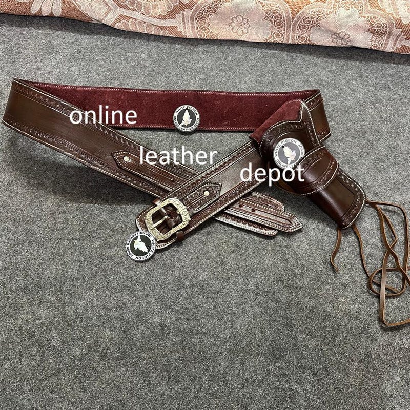 Western Leder Patronengürtel mit Munitionsschlaufen und Hammerriemen zum Festbinden von Revolverholster und Pistolenhülle .22 .32 .357 .38 .44 .45
