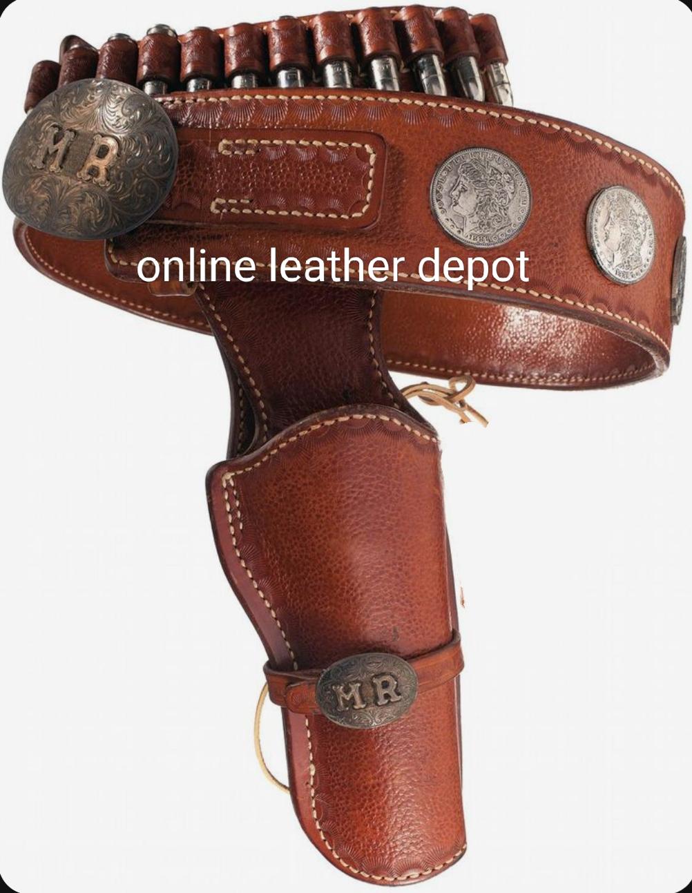 Western-Patronengürtel aus Leder mit Schlaufen und Hammerriemen, Revolverholster, Pistolenhülle .22.32.357.38.44.45 ,