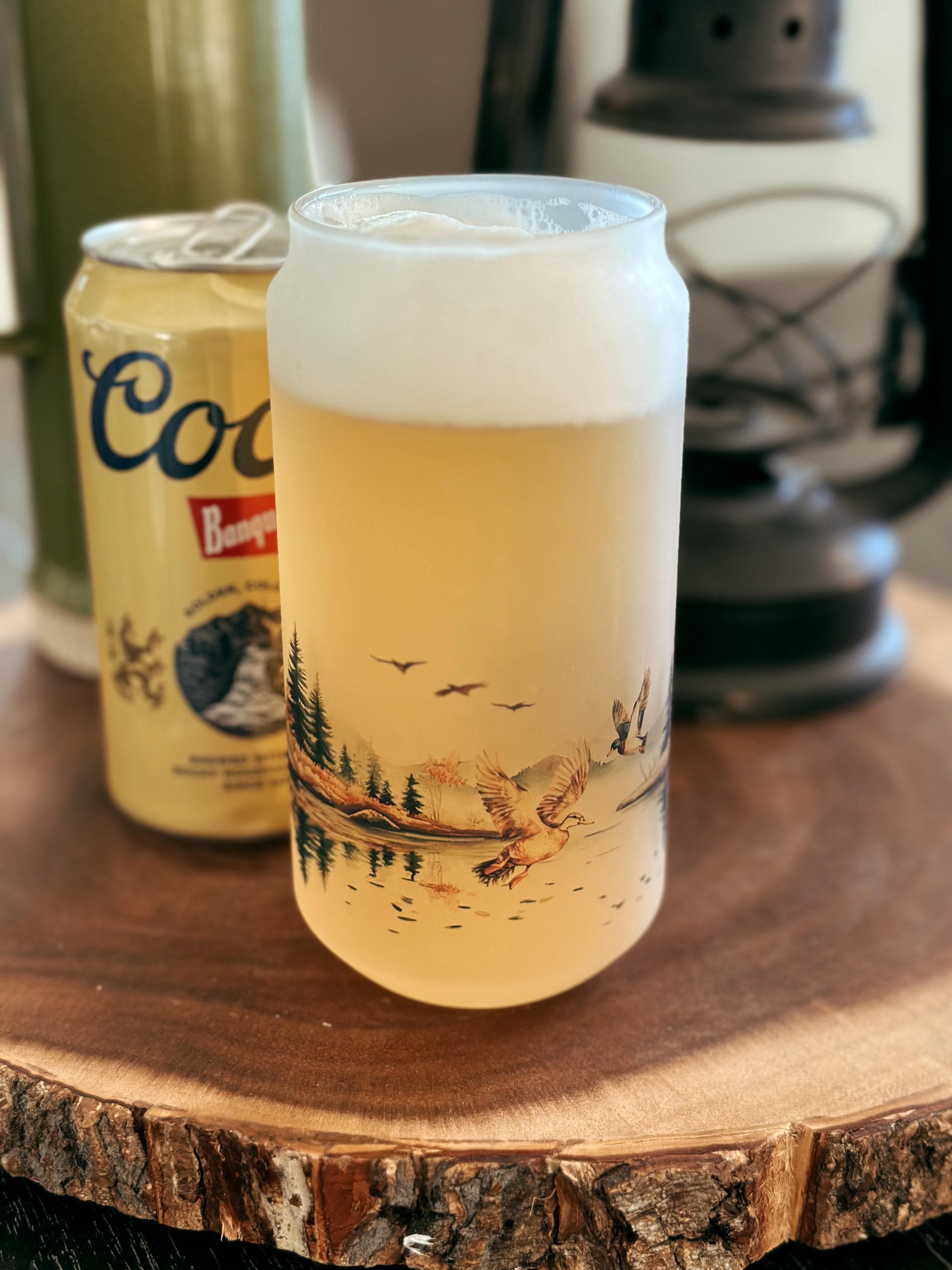Milchglas, Wildtier-Trinkgeschirr, Natur-inspiriertes Glas, Geschenk für Outdoor-Liebhaber, Szenisches Trinkgeschirr, Glas mit Entenszene, Bierglas, Geschenk für Naturliebhaber, Stockente, Enten